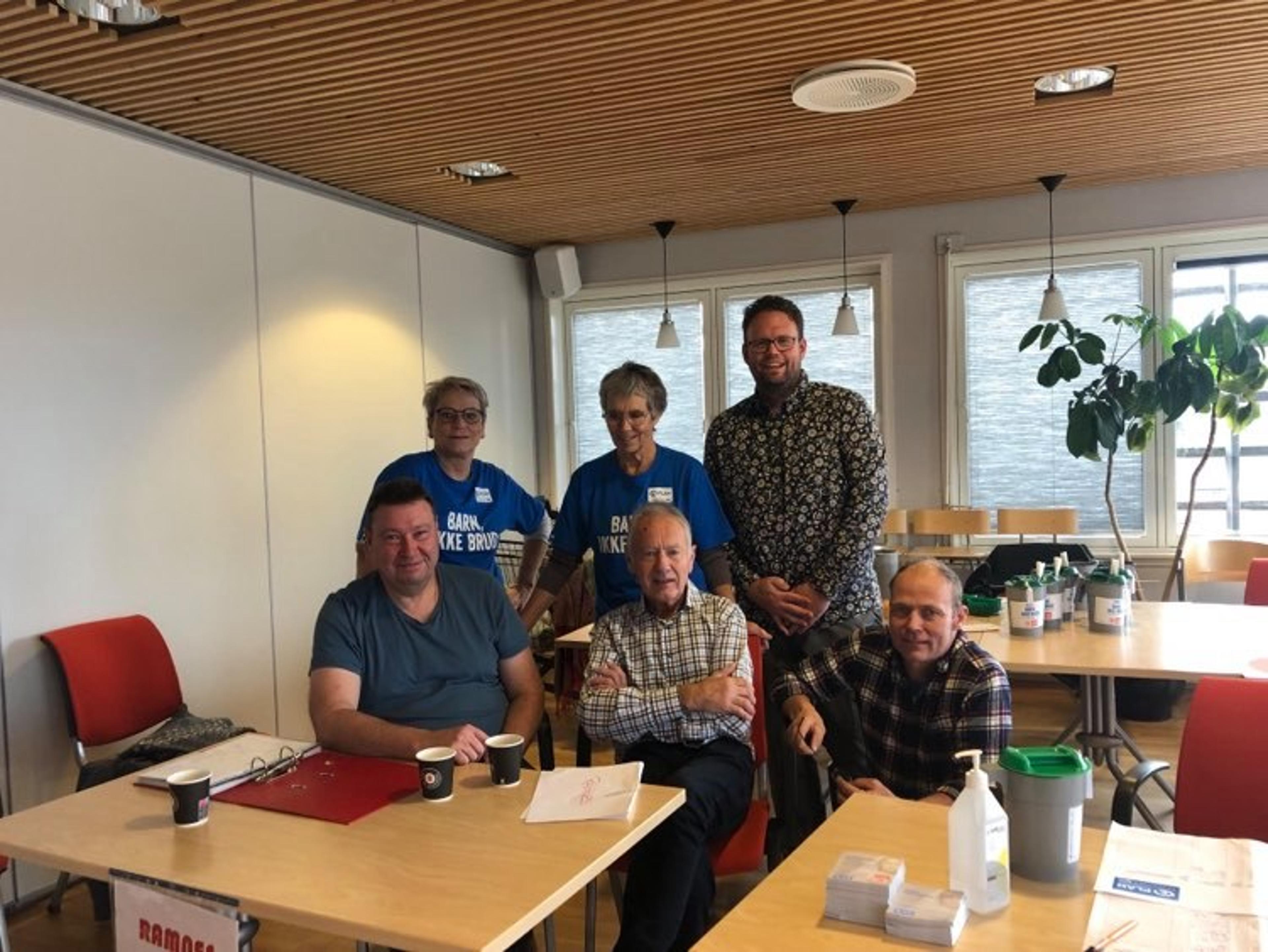 FOLKEVALGTE I GAMLE RE KOMMUNE: Disse organiserer TV-aksjonen i Re, foran fra venstre Trond Ekstrøm, Thorvald Hillestad og Svein Holmøy. Bak fra venstre rodeleder i Re Tove Øygarden, Elisabeth Sann og Lars Jørgen Ormestad. Foto: Privat.
