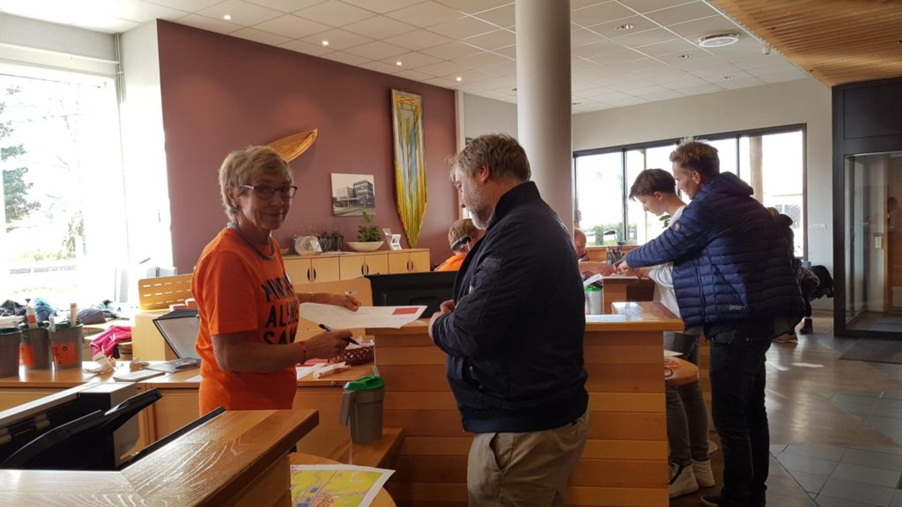 MANGLER BØSSEBÆRERE: Det pleier å være veldig folksomt på kommunehuset når TV-aksjonen drar i gang. Det var det ikke i år. Foto: Marianne Nordby.