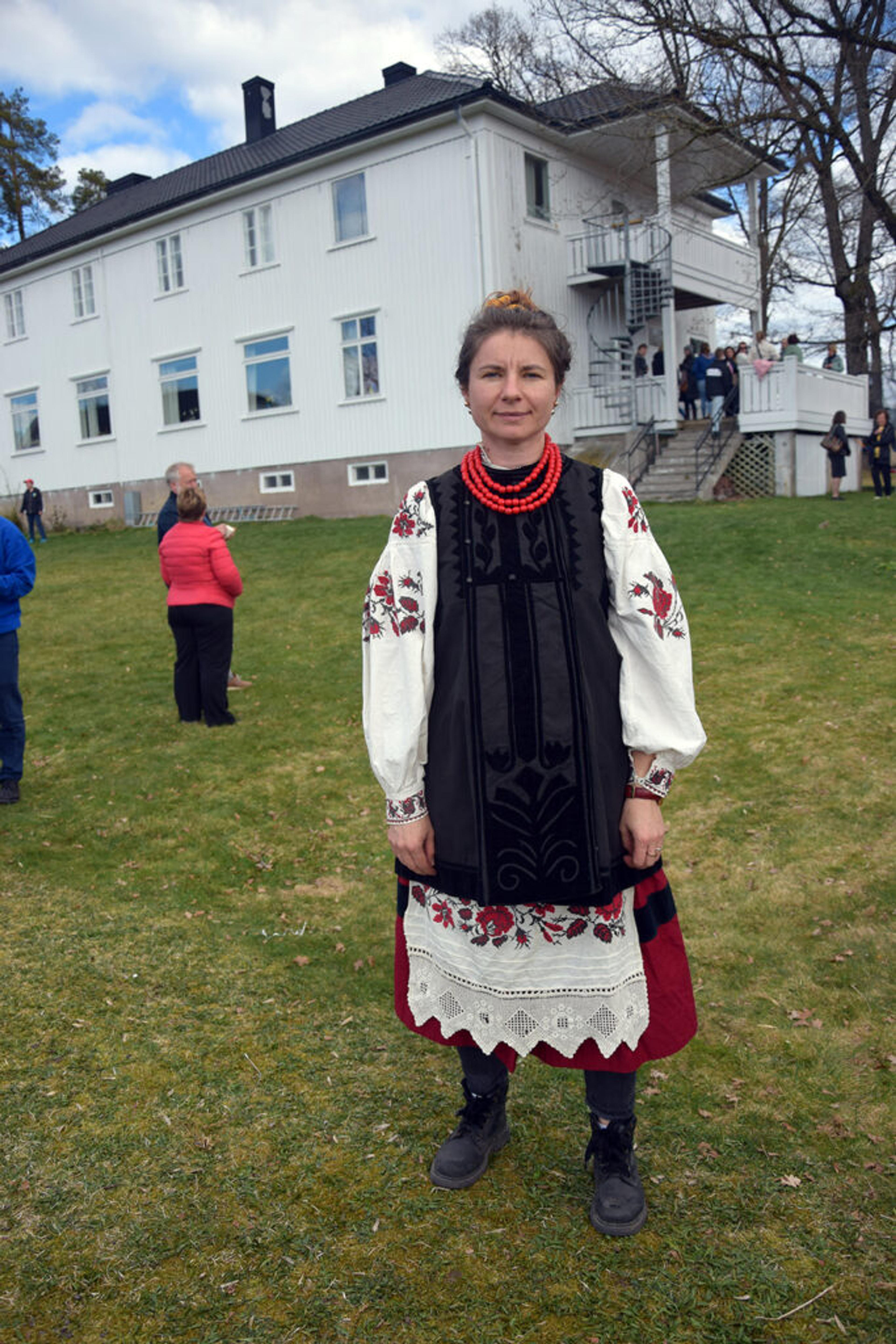 UKRAINSK FORENING I ØST-NORGE: Arrangerte påskefeiringa på Våle menighetshus søndag 24. april, her representert ved Anastasia Smyk i sin folkedrakt fra Ukraina. Foto Håkon Westby.
