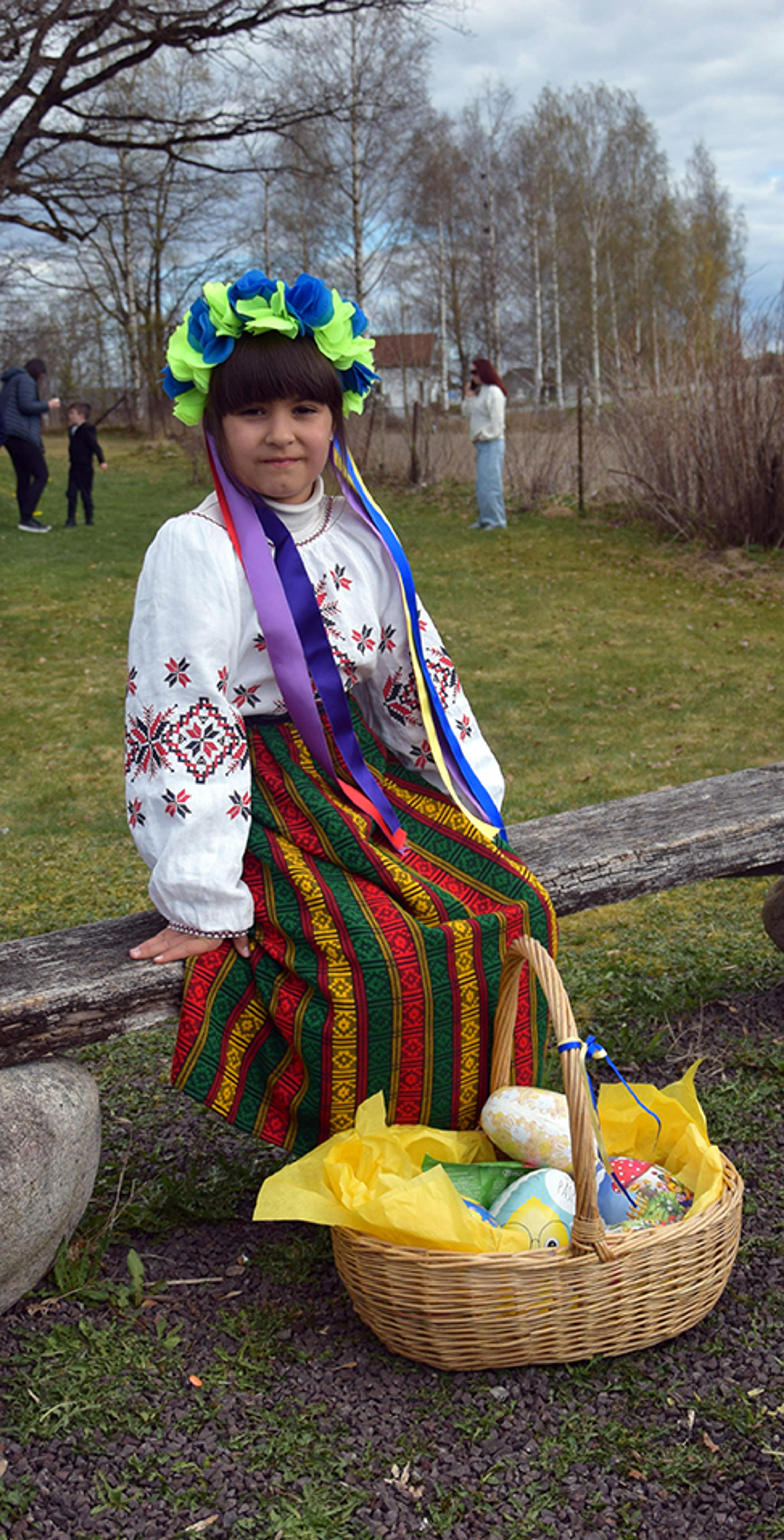 PÅSKEEGG: Hører med også i ukrainsk påskefeiring. Her sitter Uliana Golik (8) med en kurv med påskeegg foran seg. Foto: Håkon Westby.