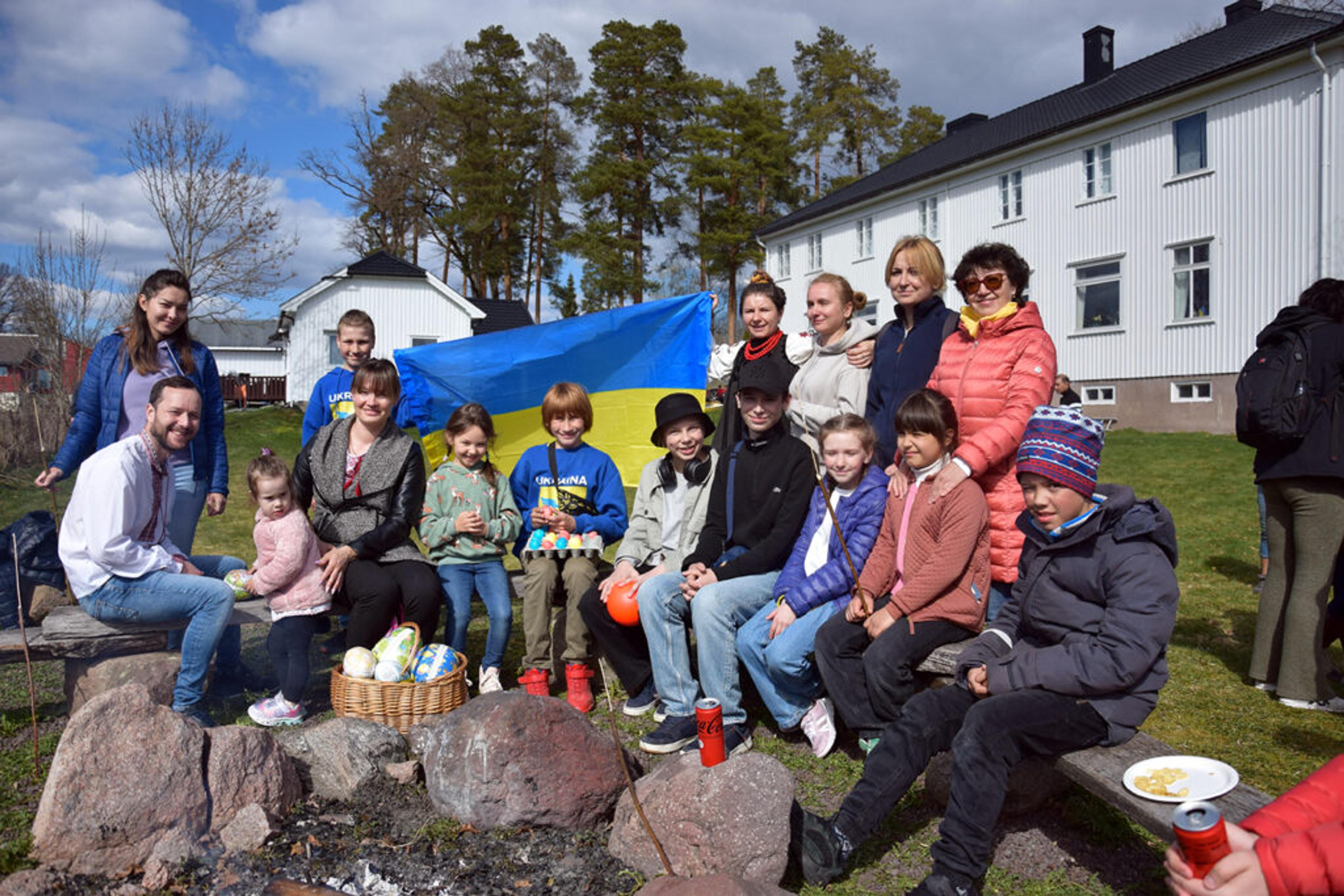 Inne var det dekket opp til koldtbord med ukrainske retter, og ute ble det leika og grilla pølser på bål.