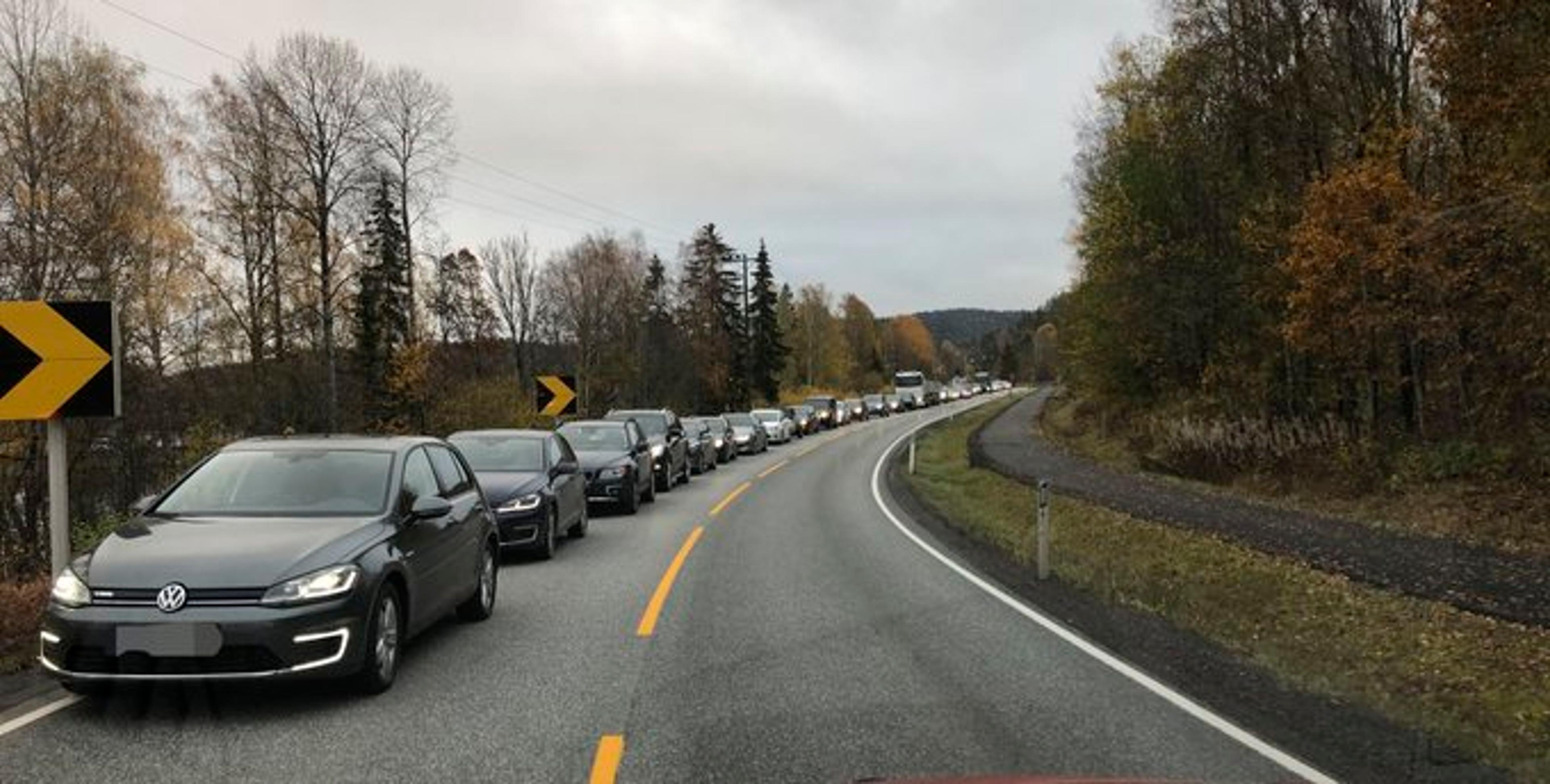 Ulykke ved Hillestadvannet – tre kilometer lang kø