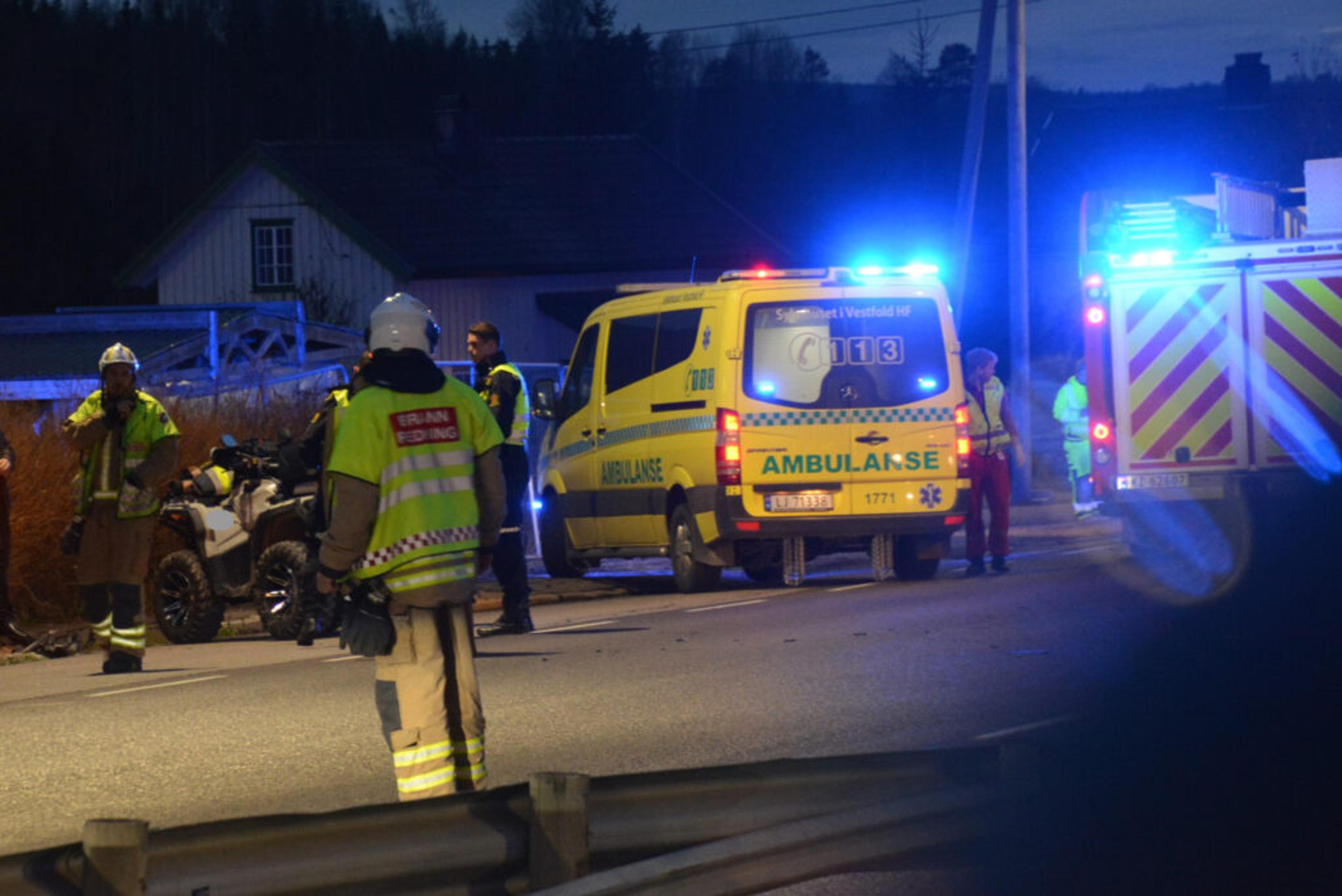 Alle nødetater rykker ut etter melding om en kollisjon mellom ATV og bil på Bispeveien, melder Politiet i Sør-Øst rett over klokka 16.00 fredag 12. november 2021: