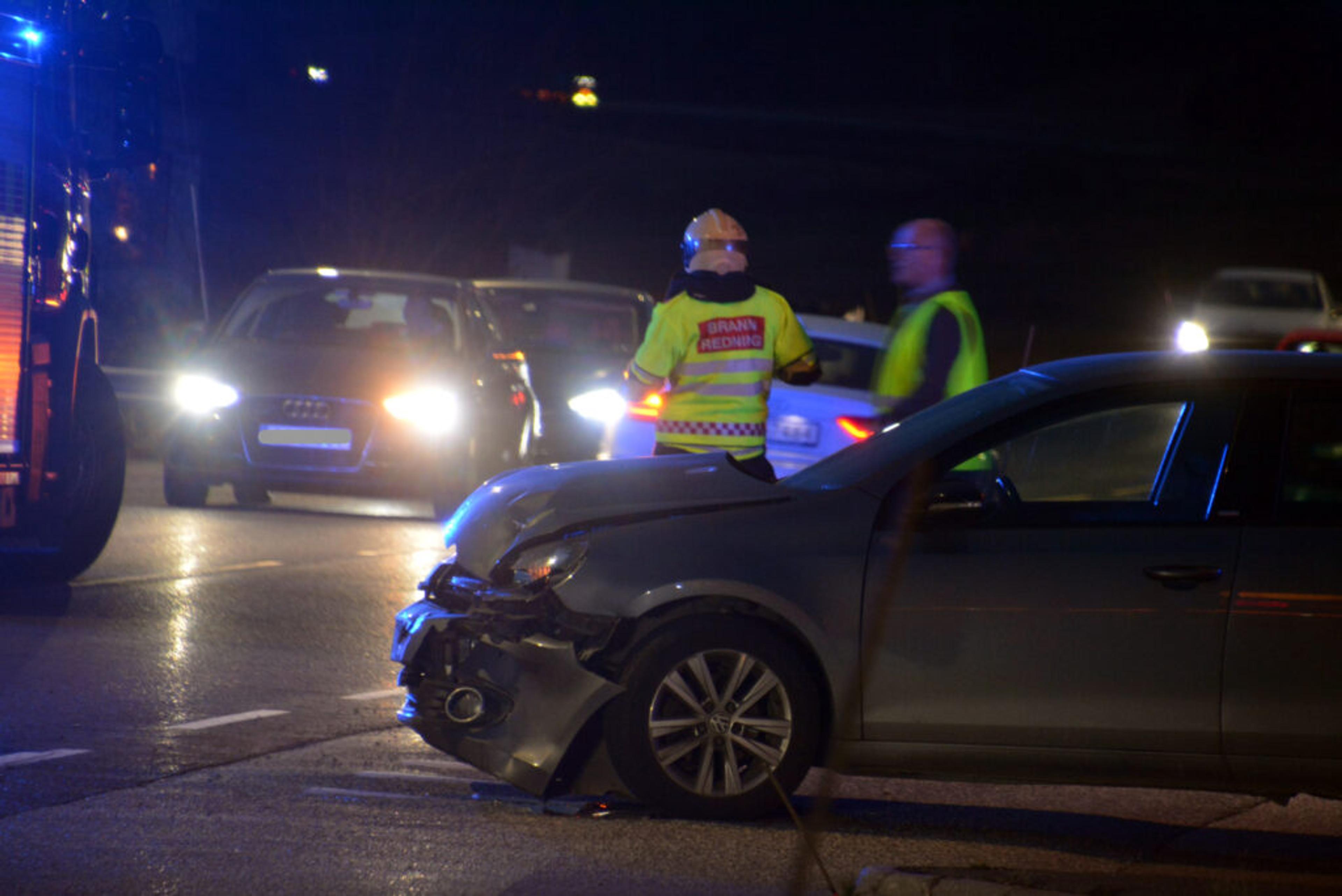 Ulykken har skjedd på Svinevoll, i krysset Bispeveien – Kopstadveien. Bilen har godt synlige skader i fronten.