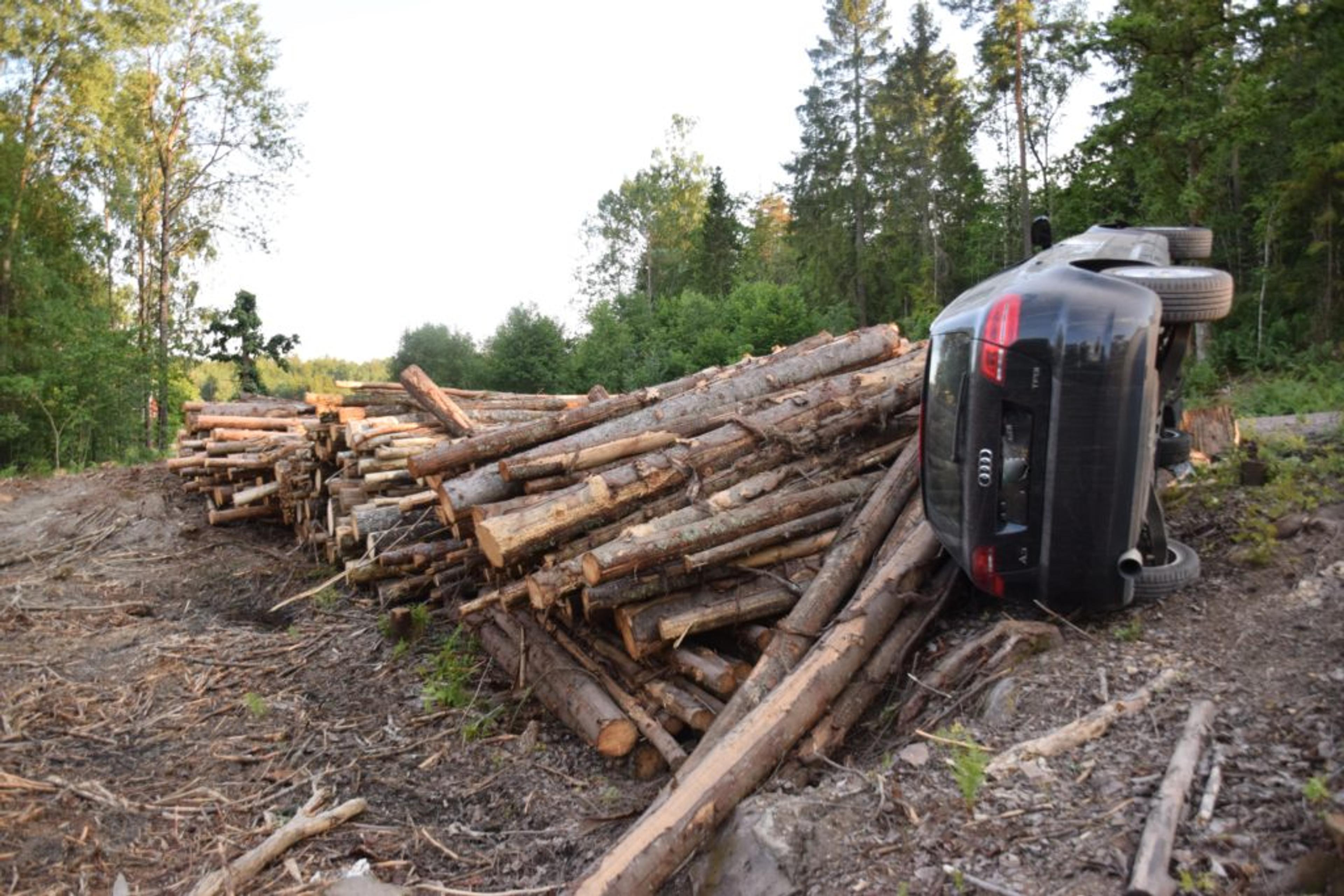 Det er store materielle skader på bilen, men de to som var i bilen da uhellet skjedde skal være friske og raske: