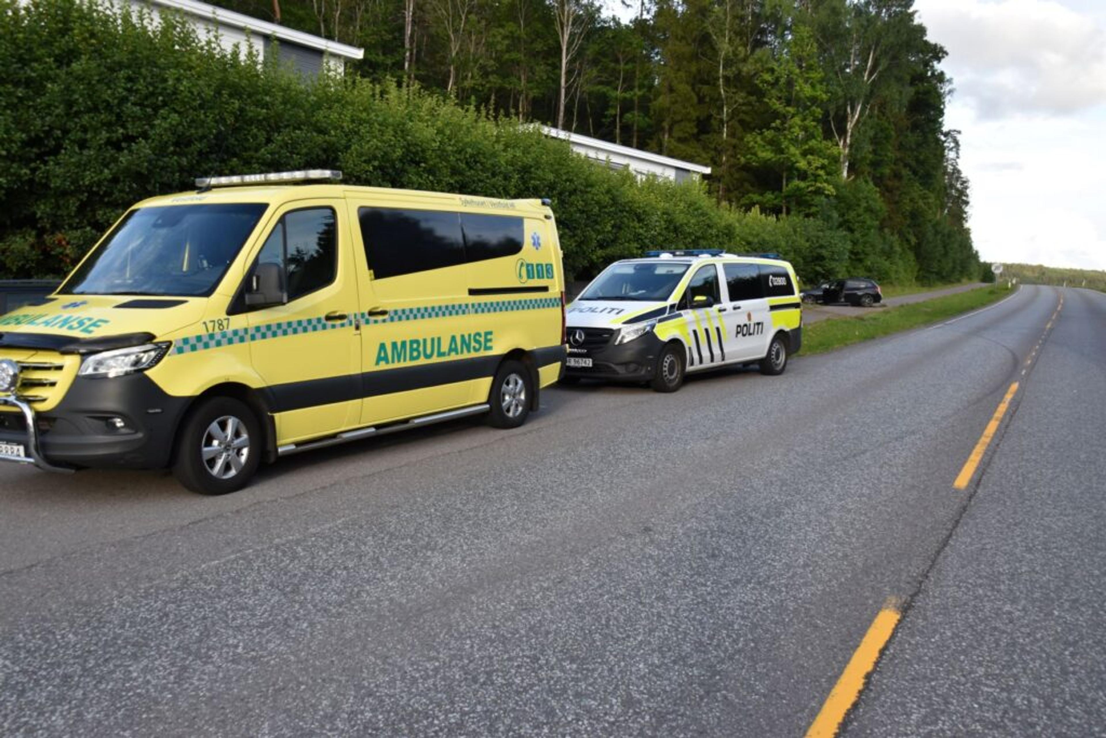 NØDETATER: Politi og ambulanse jobber på ulykkesstedet. Foto: Stian Ormestad.