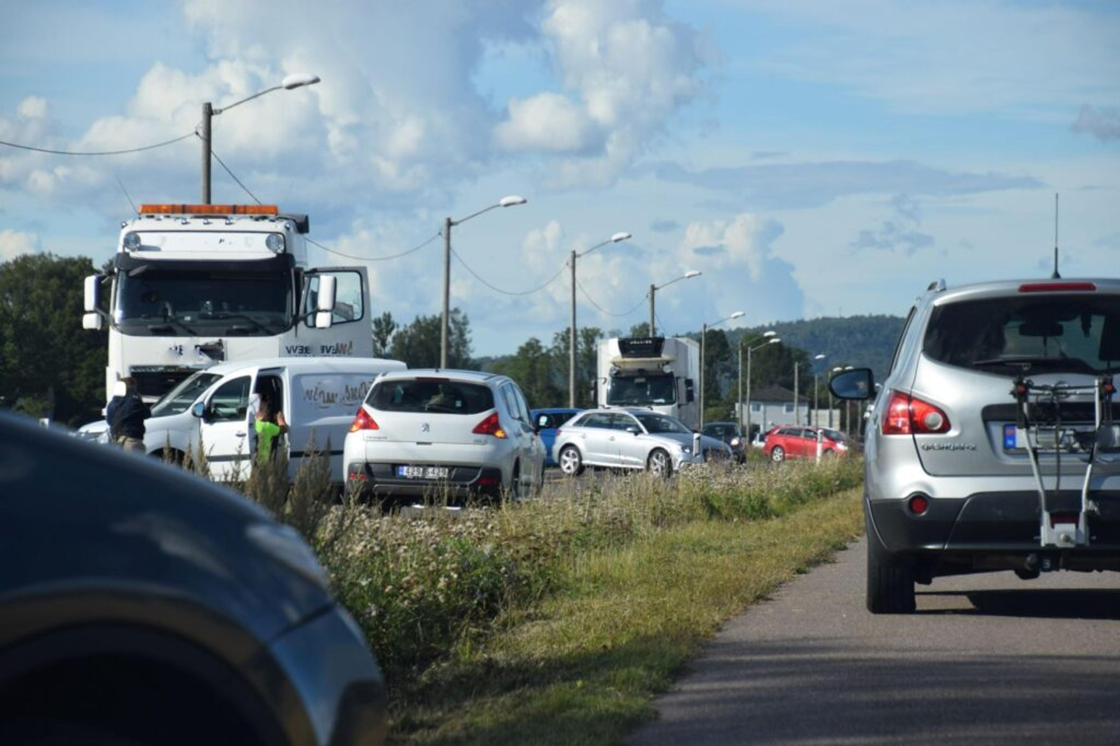Begge kjøretøy involvert ble ganske kjapt etter nødetatenes ankomst flytta ut av veibanen, så trafikken kan passere som normalt.