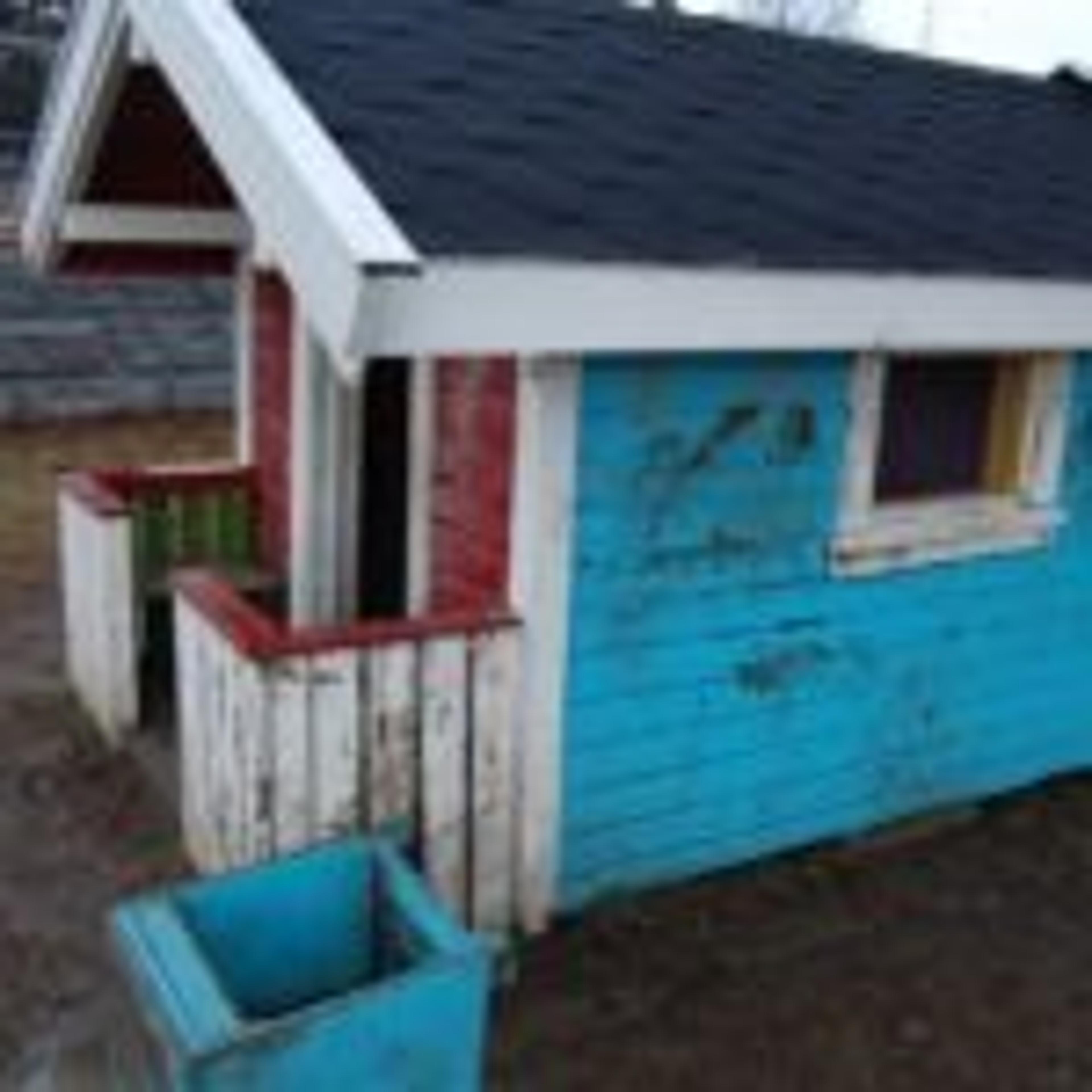 RÅTNER PÅ ROT? FAU har gitt denne lekestua i gave til barnehagen. Men hva med grunnarbeidet, som drenering? Foto: Privat.
