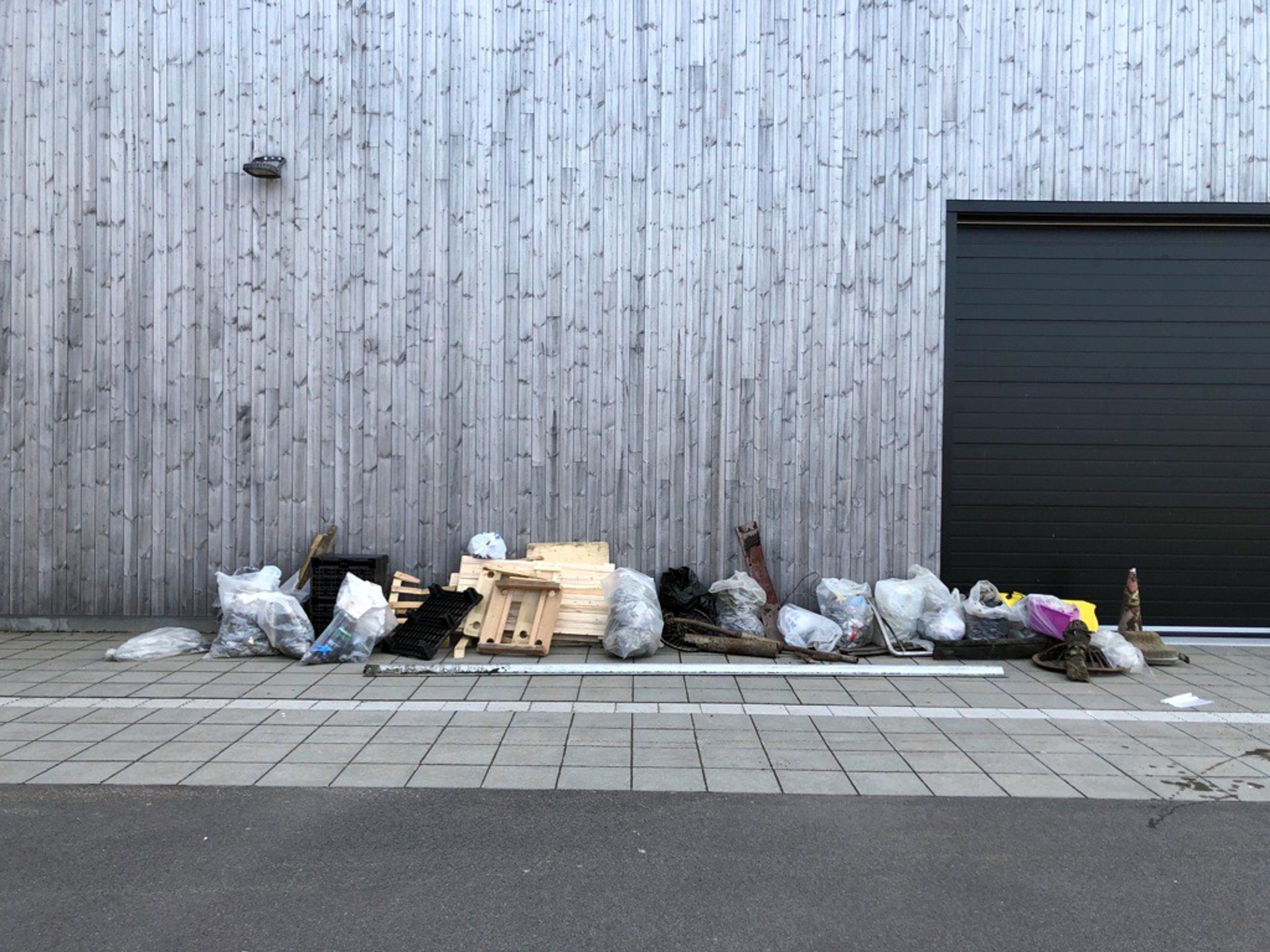 EN AV FEM SØPPELHAUGER: Dette er resultatet til en av 8. klassene – og da kan du gange denne haugen med fem for å få fasiten på all søpla Revetal ungdomsskole-elevene skal kvitte seg med. Kan du hjelpe, vil 8. klassingene gjerne høre fra deg. Foto: Privat.