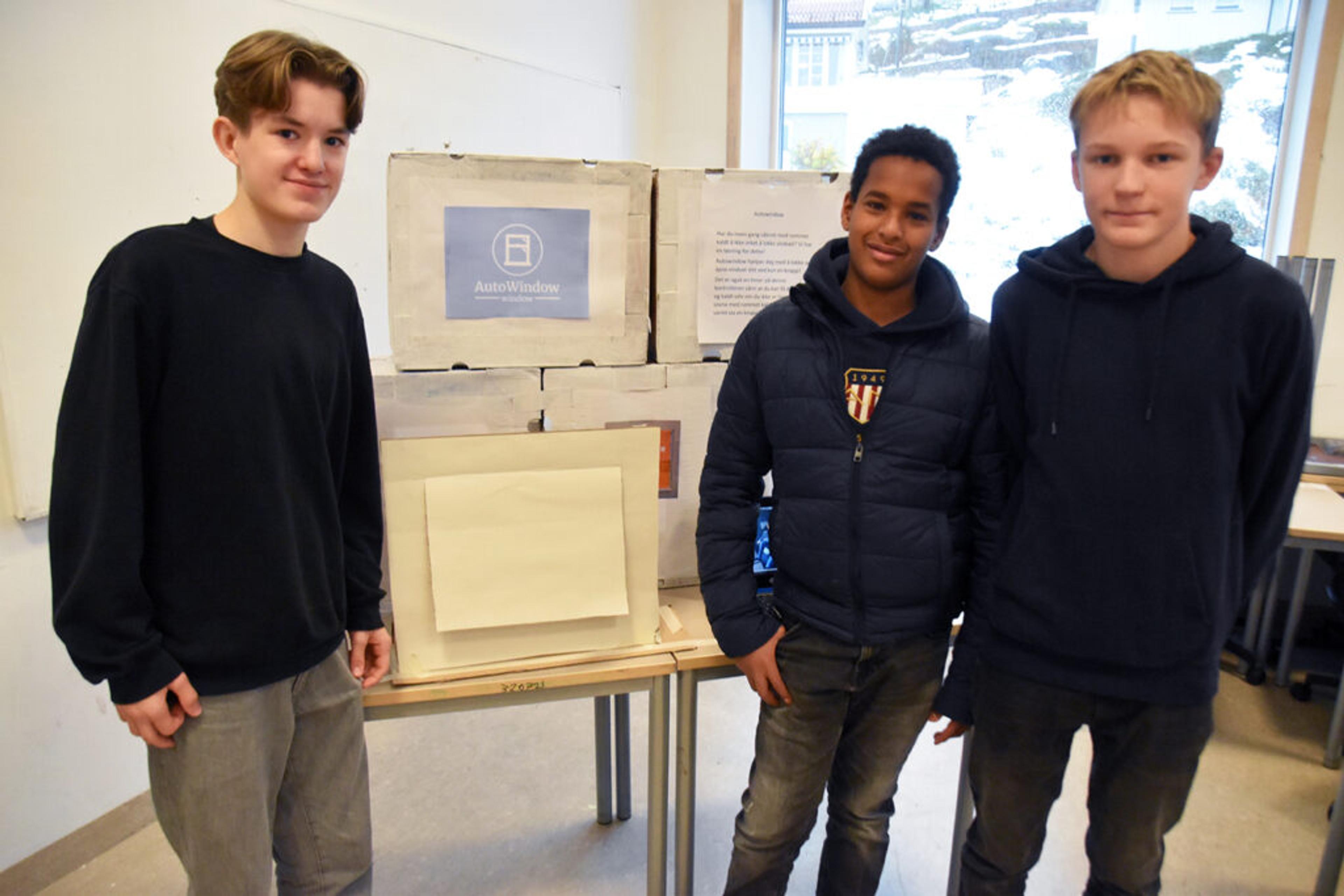 VINNER-IDEEN: Hvem kan ikke kjenne seg igjen i problemet som Marcus Bøhle Sviland, Jones H. M. Omar, Lukas Gabsevecius og Oscar Gilbert Hagard Andersen har tatt tak i? Et vindu som blir stående åpent når det burde vært lukket, eller lukket når det burde vært åpna? Foto: Stian Ormestad, ReAvisa.