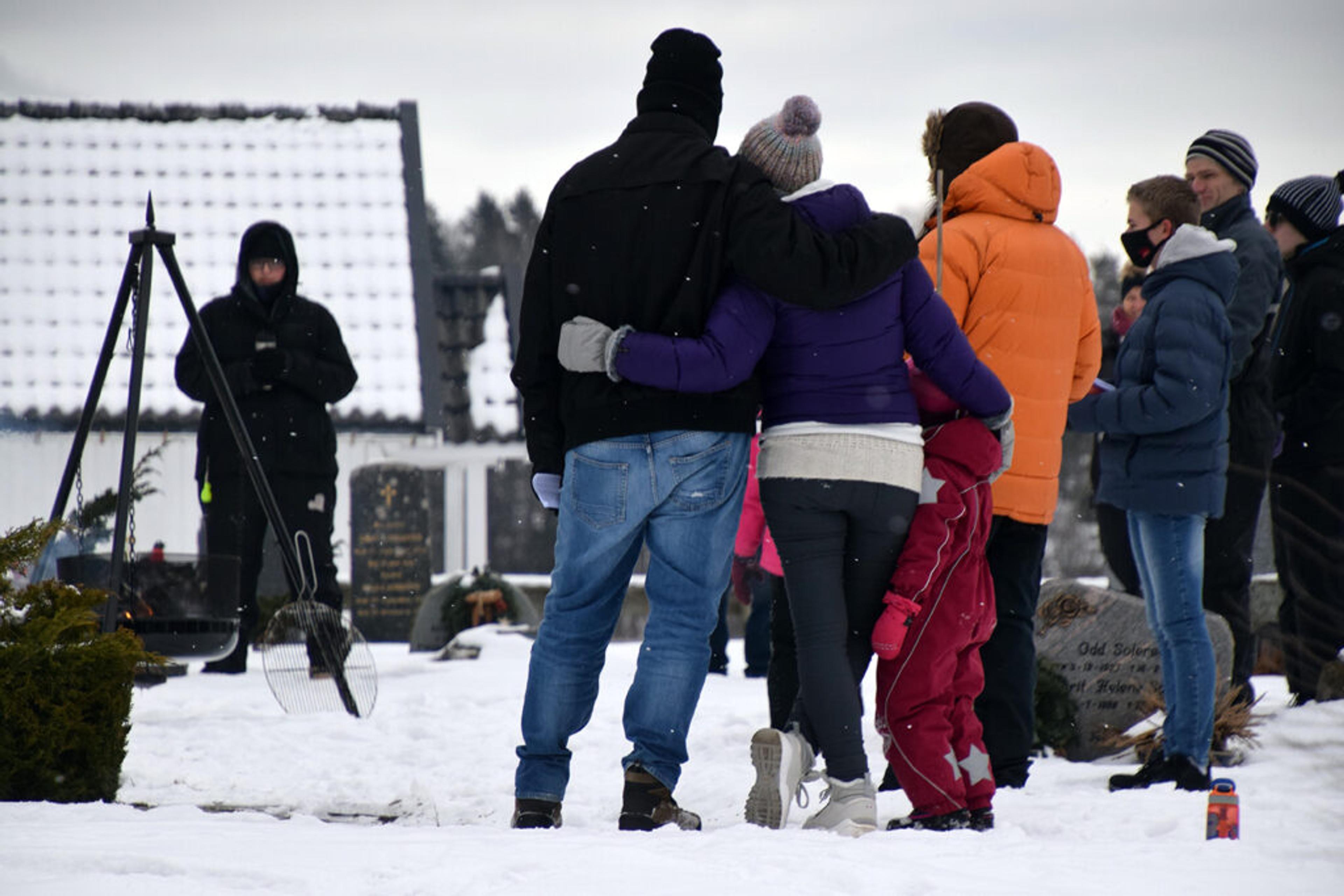 GUDSTJENESTE KORONA-STYLE: Det ble en frisk gudstjeneste i fem – seks kuldegrader, godt med vinddrag, og null og niks sol. Foto: Stian Ormestad.