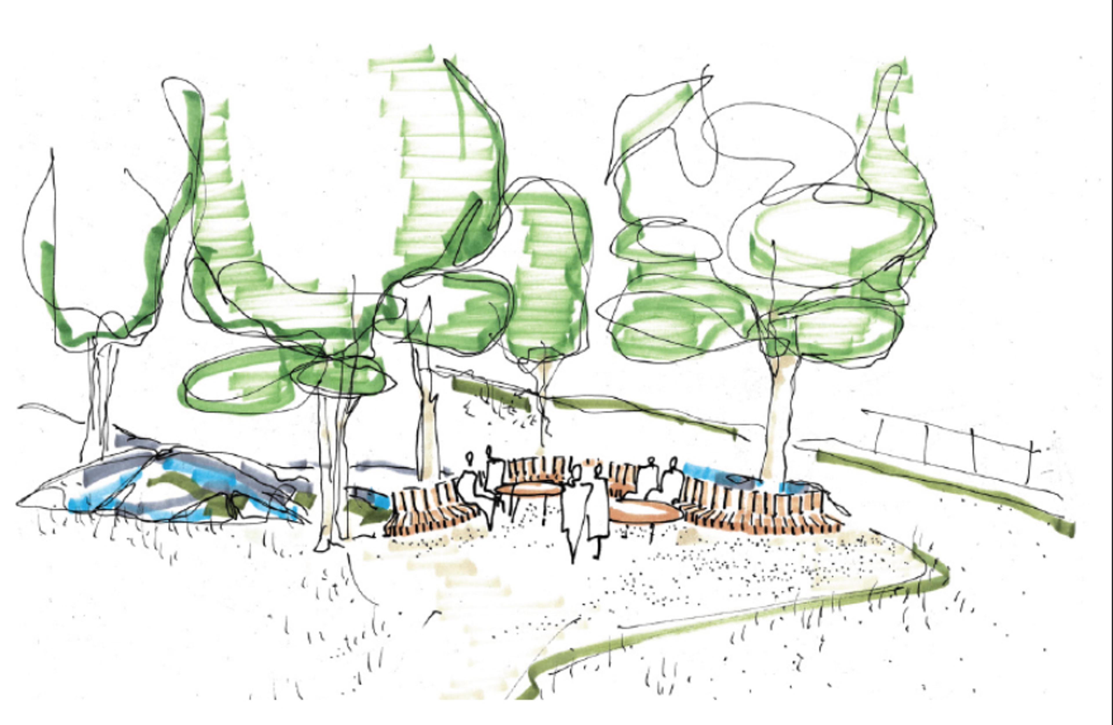 – En slags hagepark, forteller Skjalg Bjørkevoll som har designet og kona Mackenzie Primack har illustrert planene, begge fra Undrumsdal.