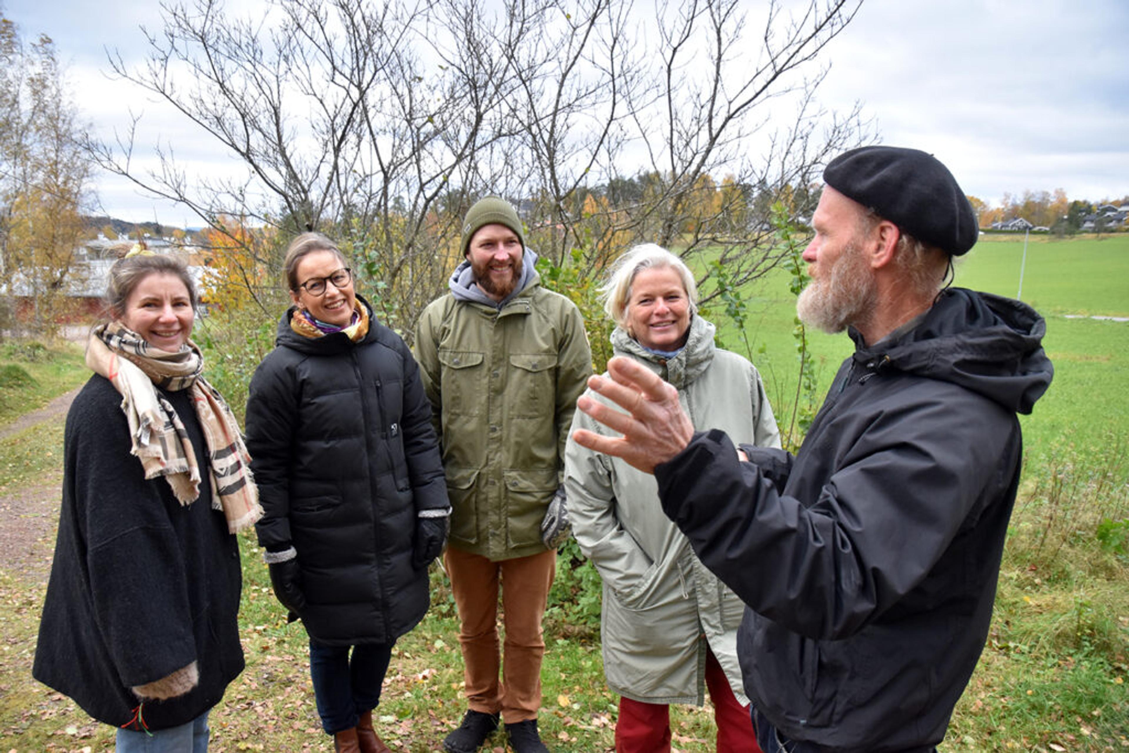 GODE GRØNNE KREFTER FORENES: Anastasiia Smyk, Cathrine Bøhle, Skjalg Bjørkevoll, Ingunn Leeber og Roar Lefsaker trekker i trådene ut fra startgropa for Revetalhagen. Foto: Stian Ormestad, ReAvisa.