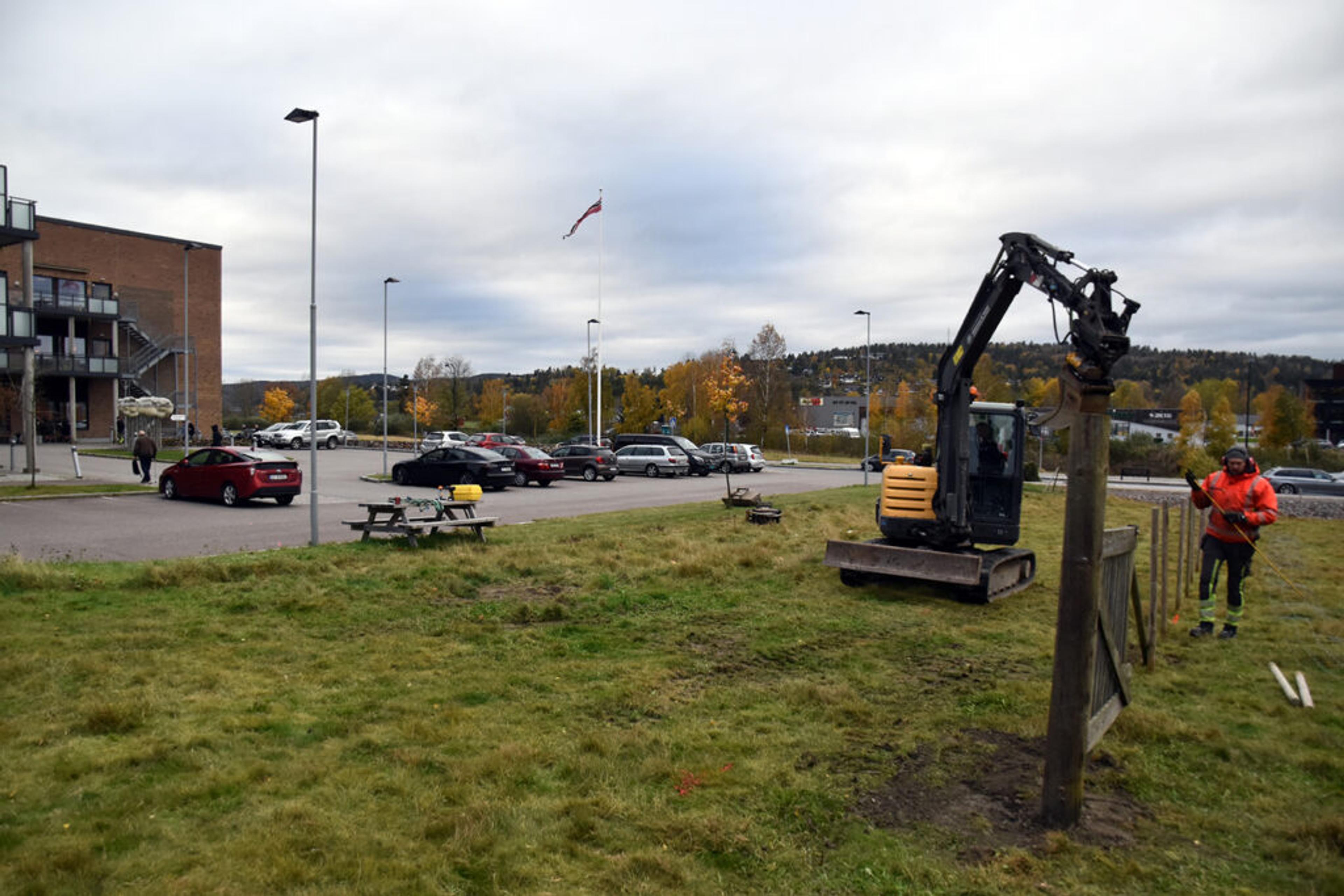 ARBEIDENE ER GODT I GANG: Møteplassen ved helsehuset er tegna og prosjektert av Landskapskollektivet, og Håkonsen og Sukke er entreprenør. Foto: Stian Ormestad, ReAvisa.