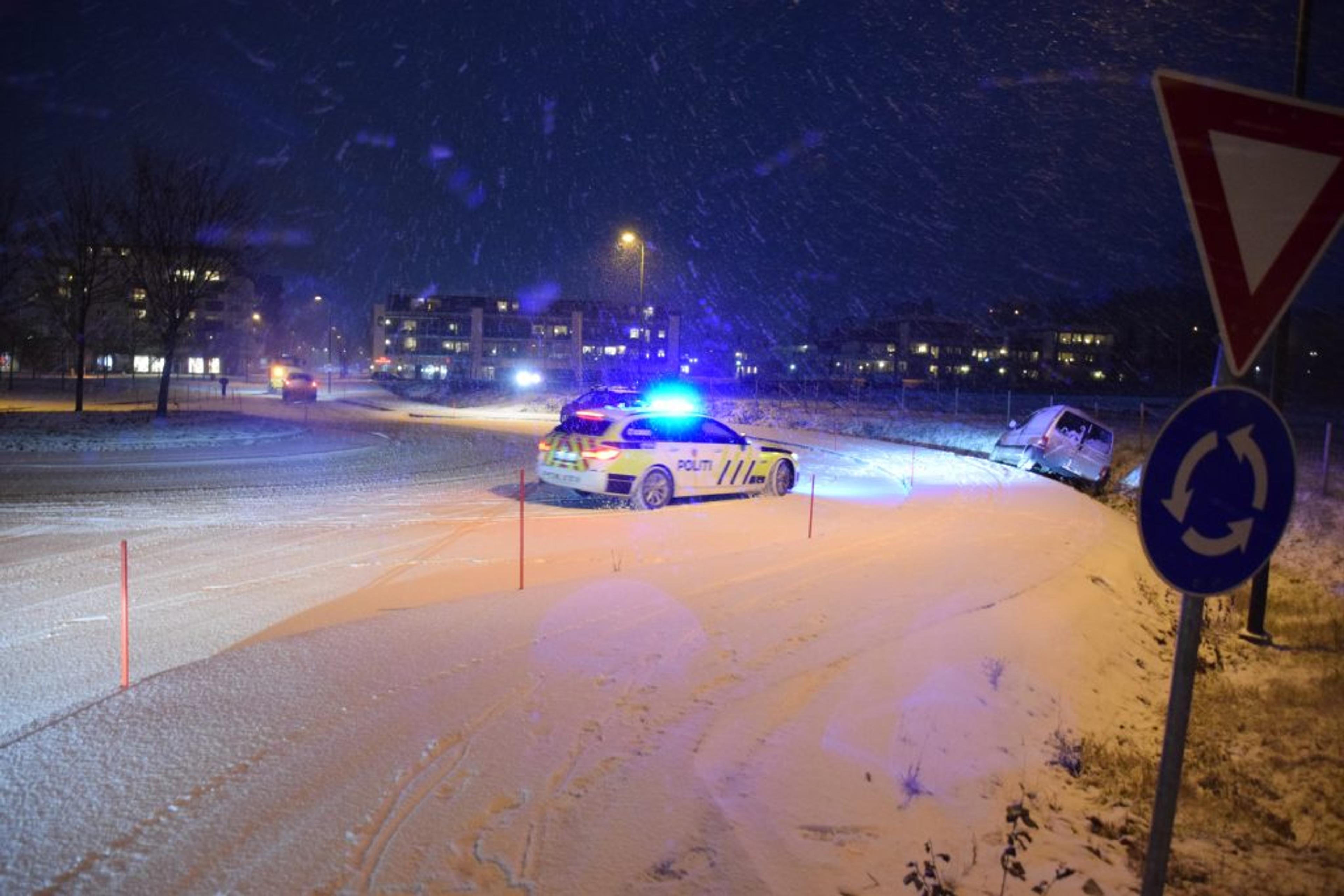 Det skal heldigvis ikke ha vært noen myke trafikanter på gangstien, og føreren av bilen framstår ikke som skadet, ifølge politiet på stedet. Men føreren av bilen framstår som full.