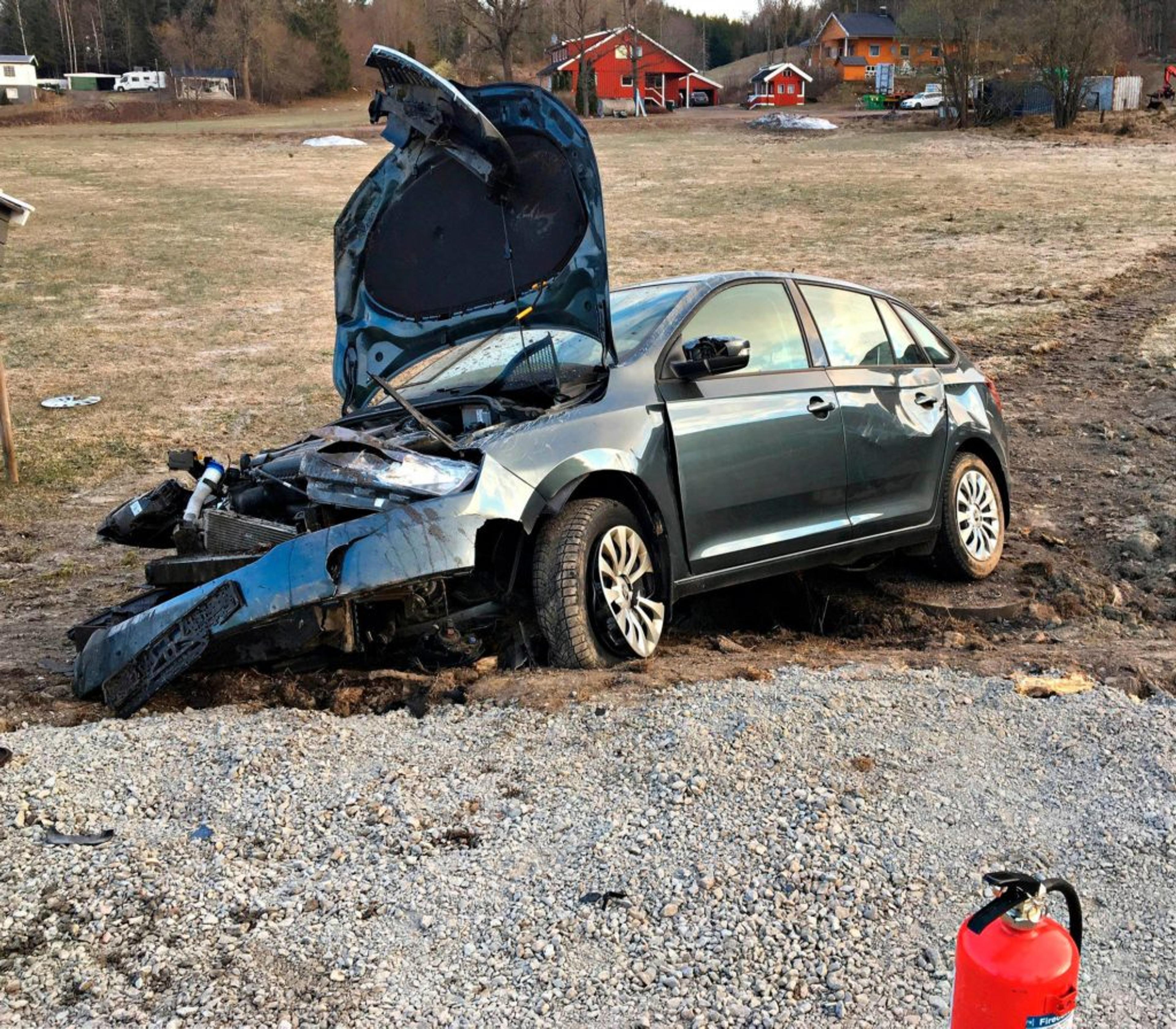 – De hadde i tillegg gjort bilen strømløs, derfor var det svært lite å gjøre for oss annet enn å sikre skadestedet da vi ankom som første nødetat.