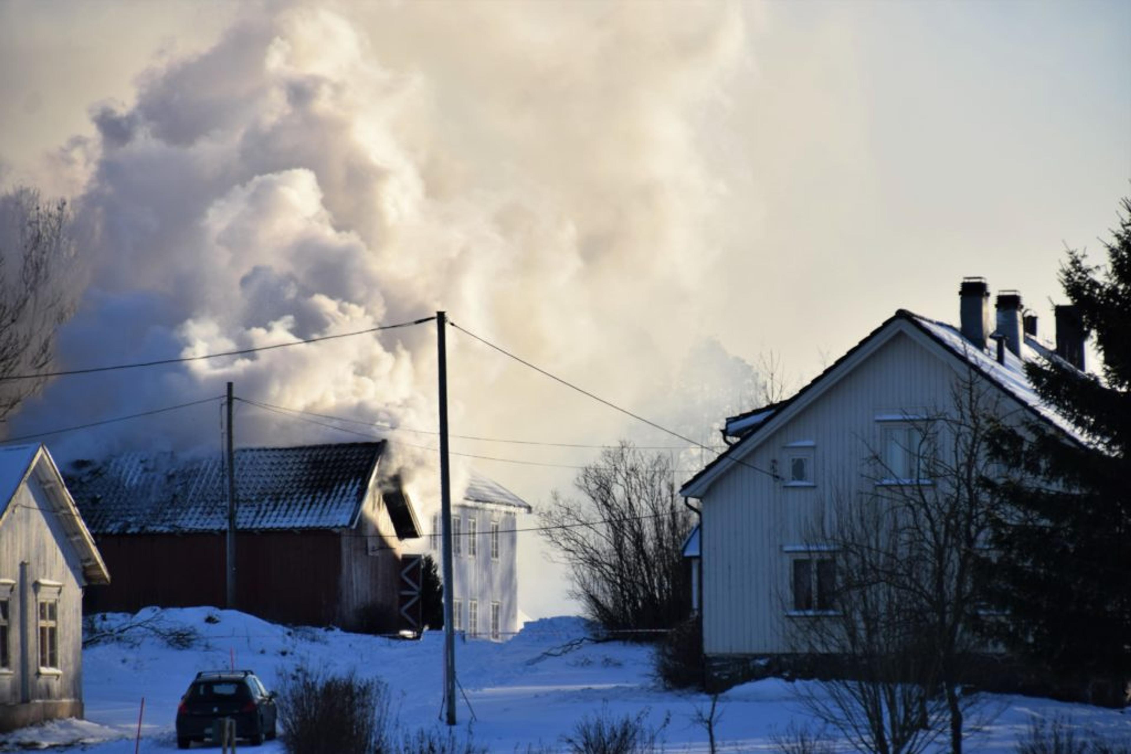 Da nødetatene kom til stedet var det synlige flammer og røyken er synlig fra langt hold.