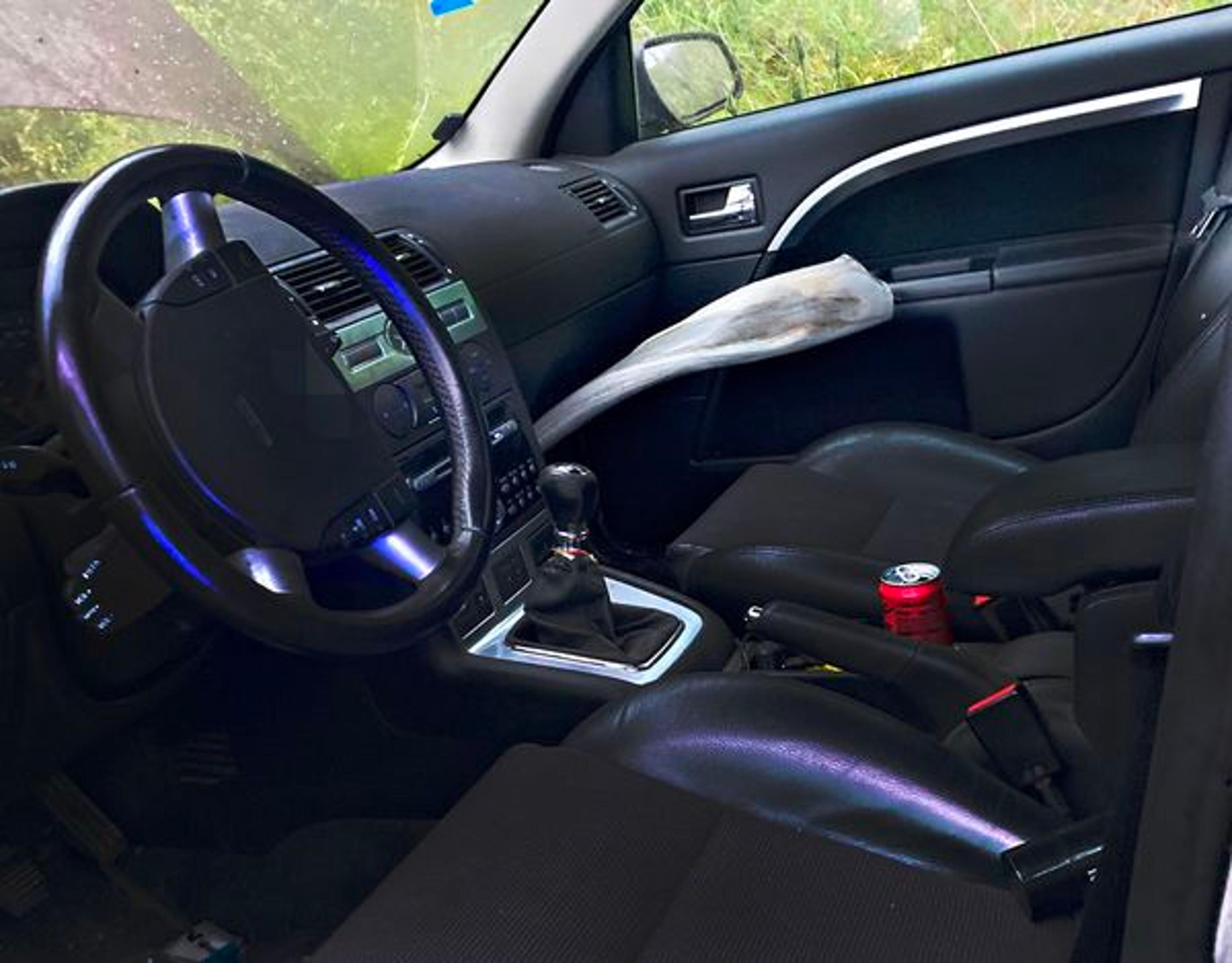 SKUMMELT: Autovernet har skjært seg gjennom torpedoveggen og inn i bilen. Foto: VIB.