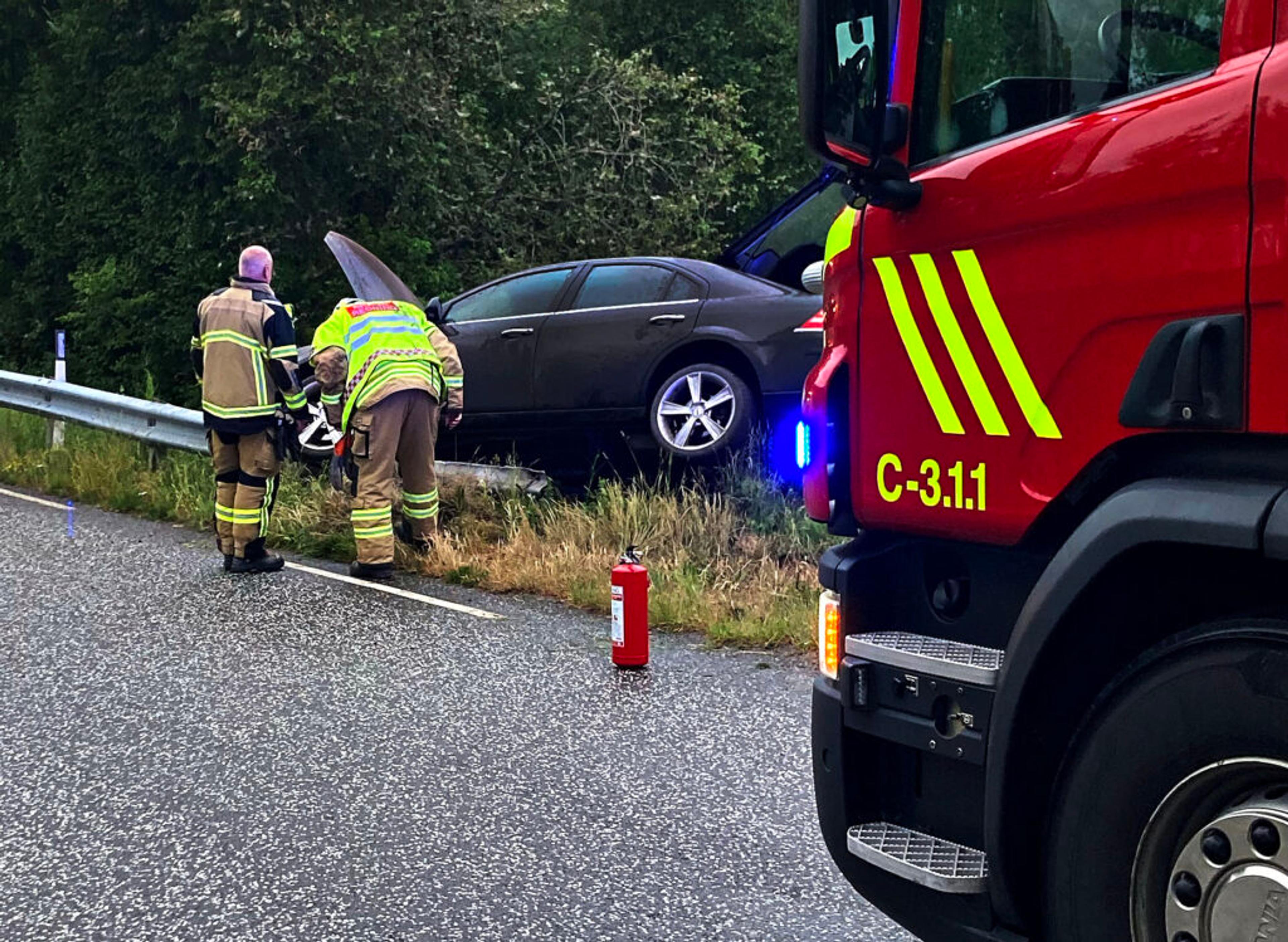 – Vi tok strømmen på bilen, stoppet bensinlekkasje og sikret skadestedet etter trafikkuhellet, sier brannmesteren.