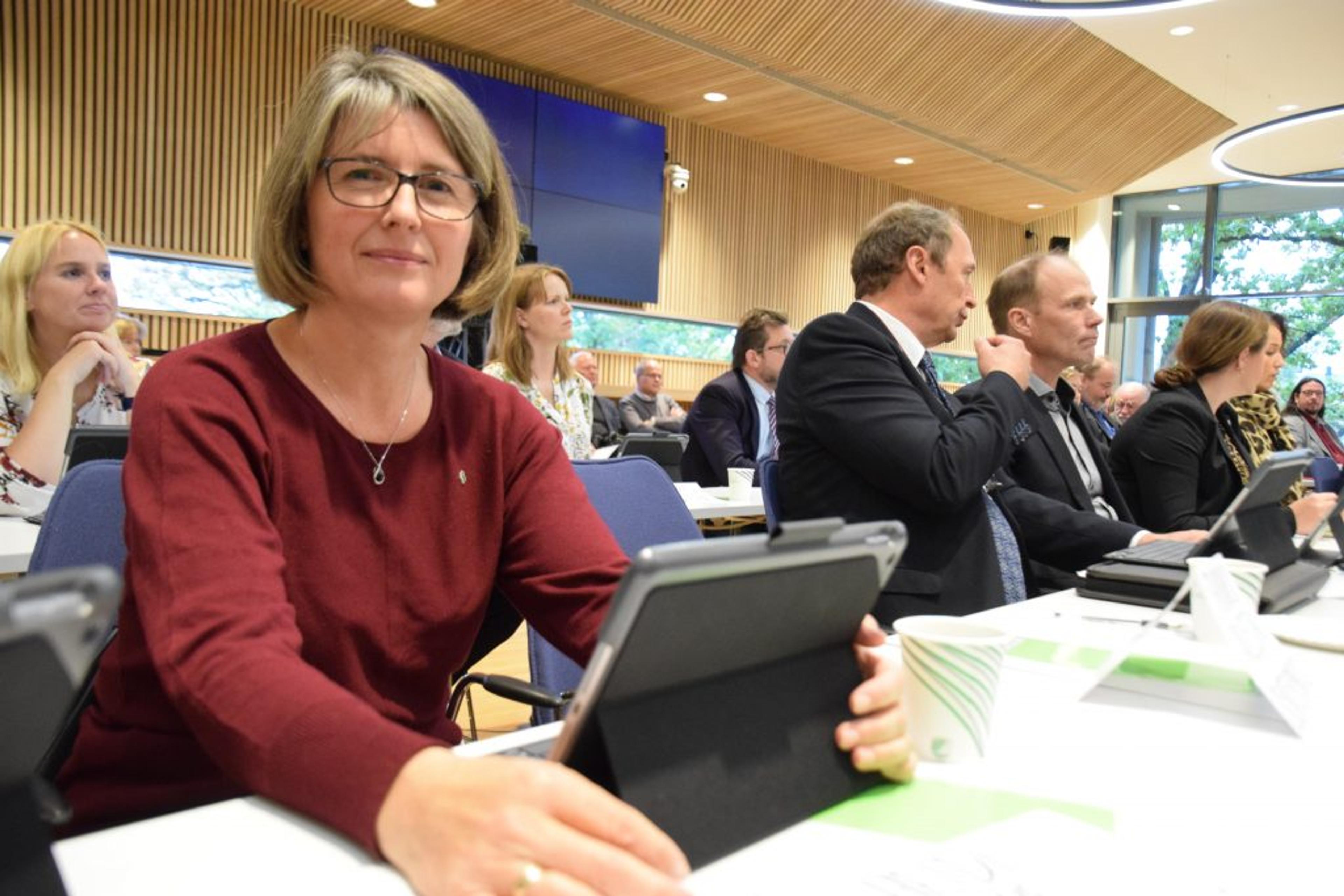 NY LEDER: Jill Eirin Undem (SP) fra Vear rykker opp til ledervervet i Utvalg for oppvekst og opplæring. Dermed er det bare en hovedutvalgsleder igjen med adresse i gamle Re kommune i nye Tønsberg kommune. Foto: Stian Ormestad.