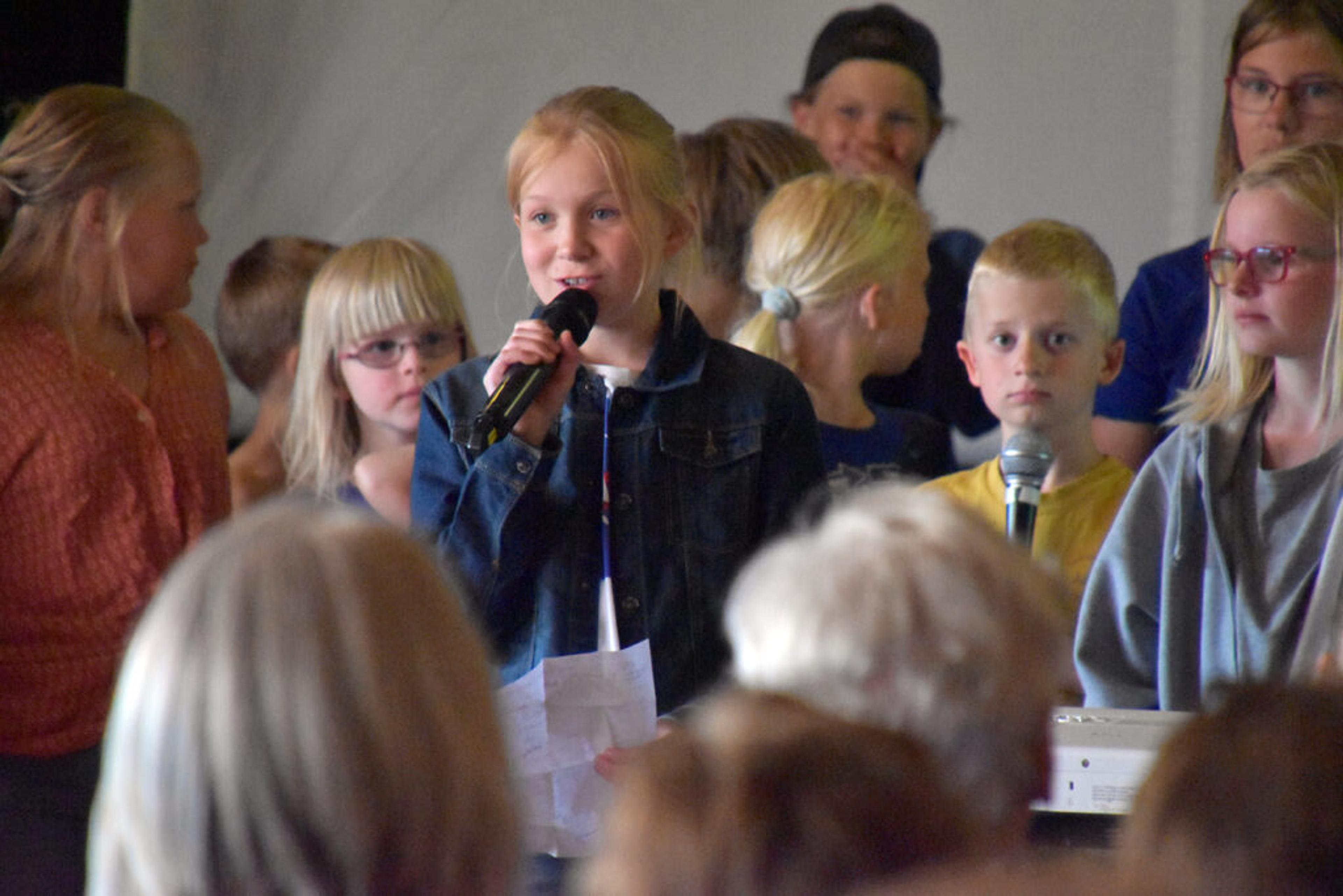 Olivia i 7. klasse avslutta sin appell med en innstendig bønn til de som styrer og steller i den nye storkommunen – det var mange lokalpolitikere tilstede på Dalheim i kveld.