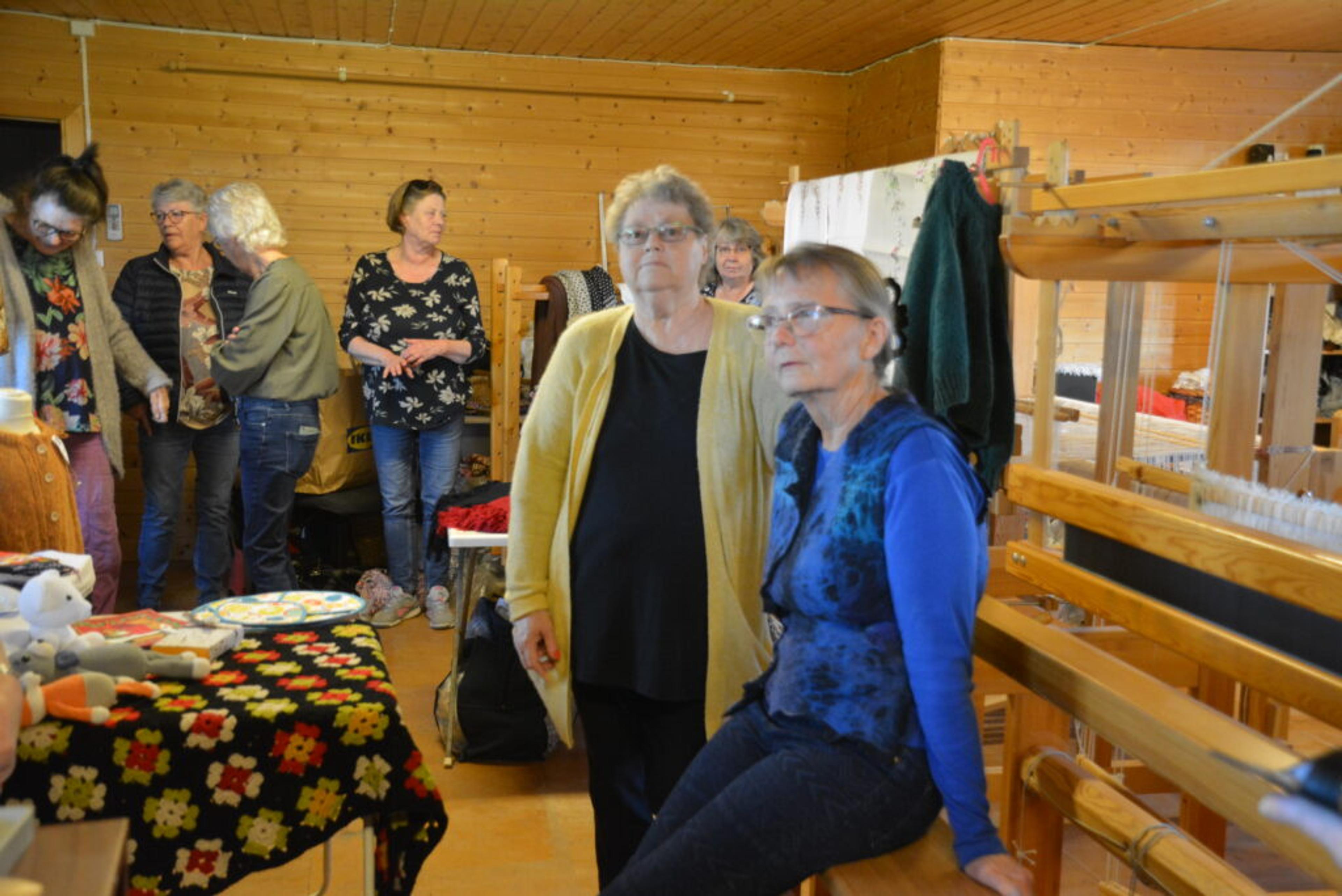 MANGE UTSTILLERE: Turid Kvalvåg til høyre er en av utstillerne og stiller ut håndverk av gjenbruksmaterialer. Foto: Lovis Eggum Wallberg.
