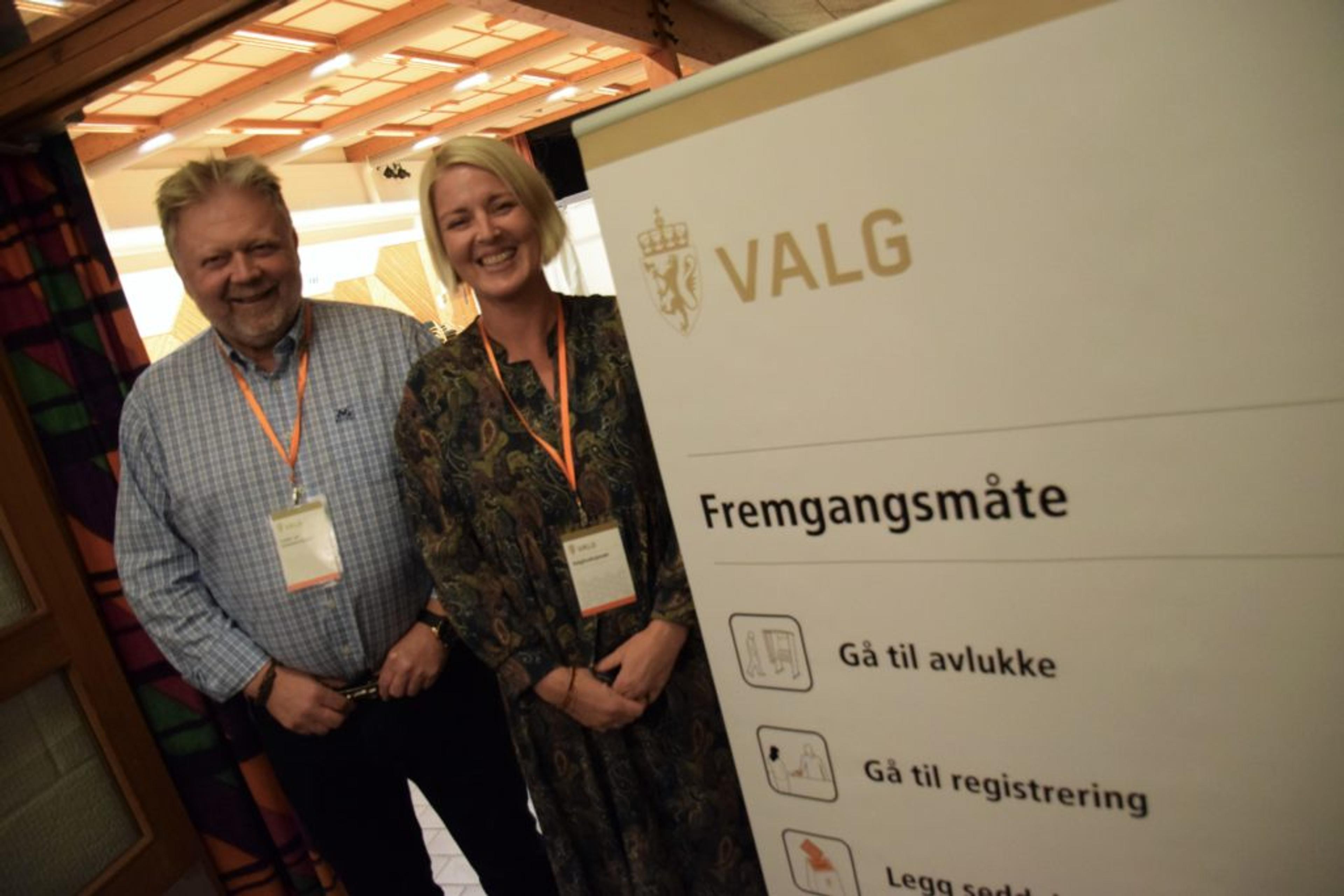 GODT VALG! I Våle var Pål Arild Simonsen sjef, og han hadde med seg blant annet Linda Elstad Johansen som valgfunksjonær på samfunnshuset. Foto: Stian Ormestad.