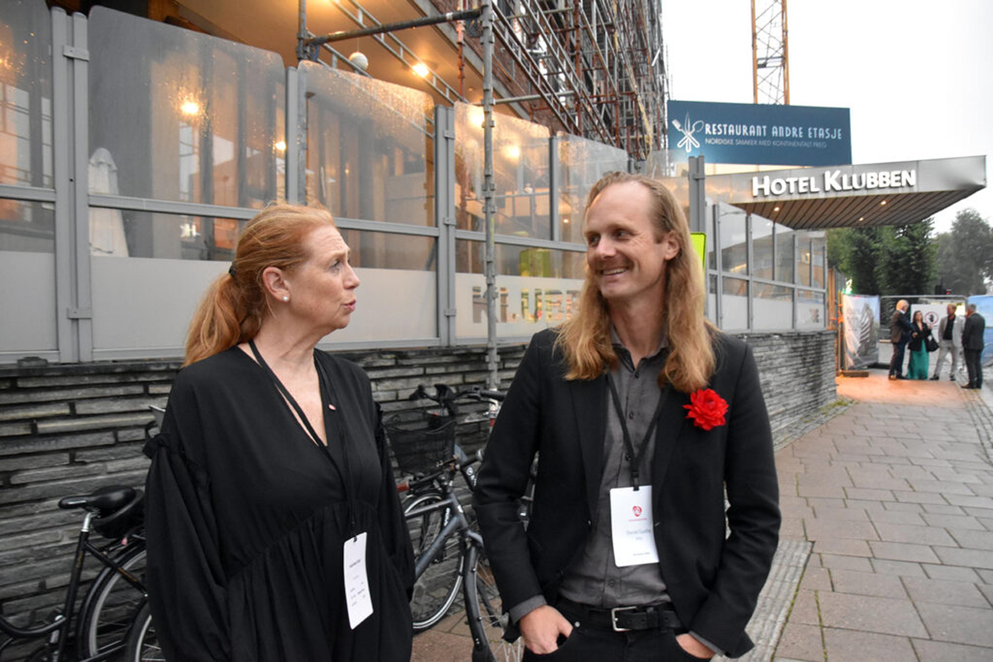 VELDIG KLARE FOR VALGVAKE: Trude Viola Nordli og Daniel Ims (begge AP) utafor Hotell Klubben, en av to valgvaker i by’n. De står begge med stemmetillegg fra partiet, og er sikra plass i det nye kommunestyret. Foto: Stian Ormestad, ReAvisa.