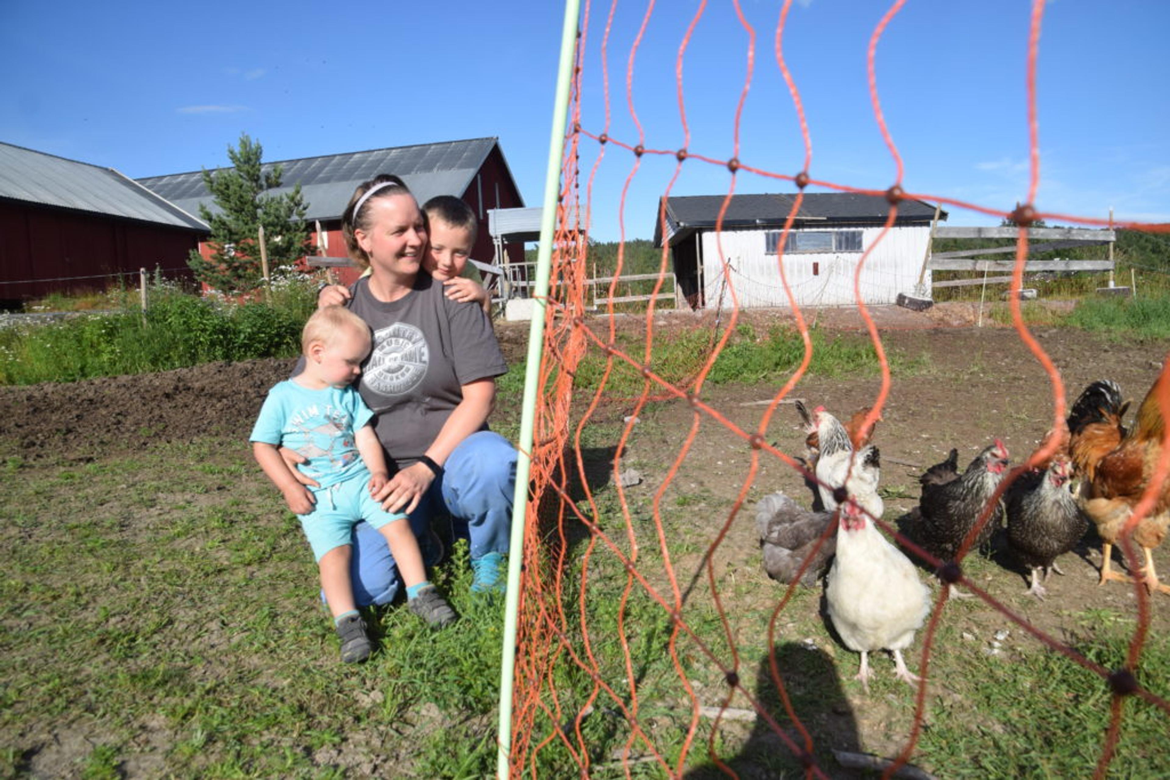 HØNER: Her plukker store og små på gården egg til eget bruk. Foto: Stian Ormestad.