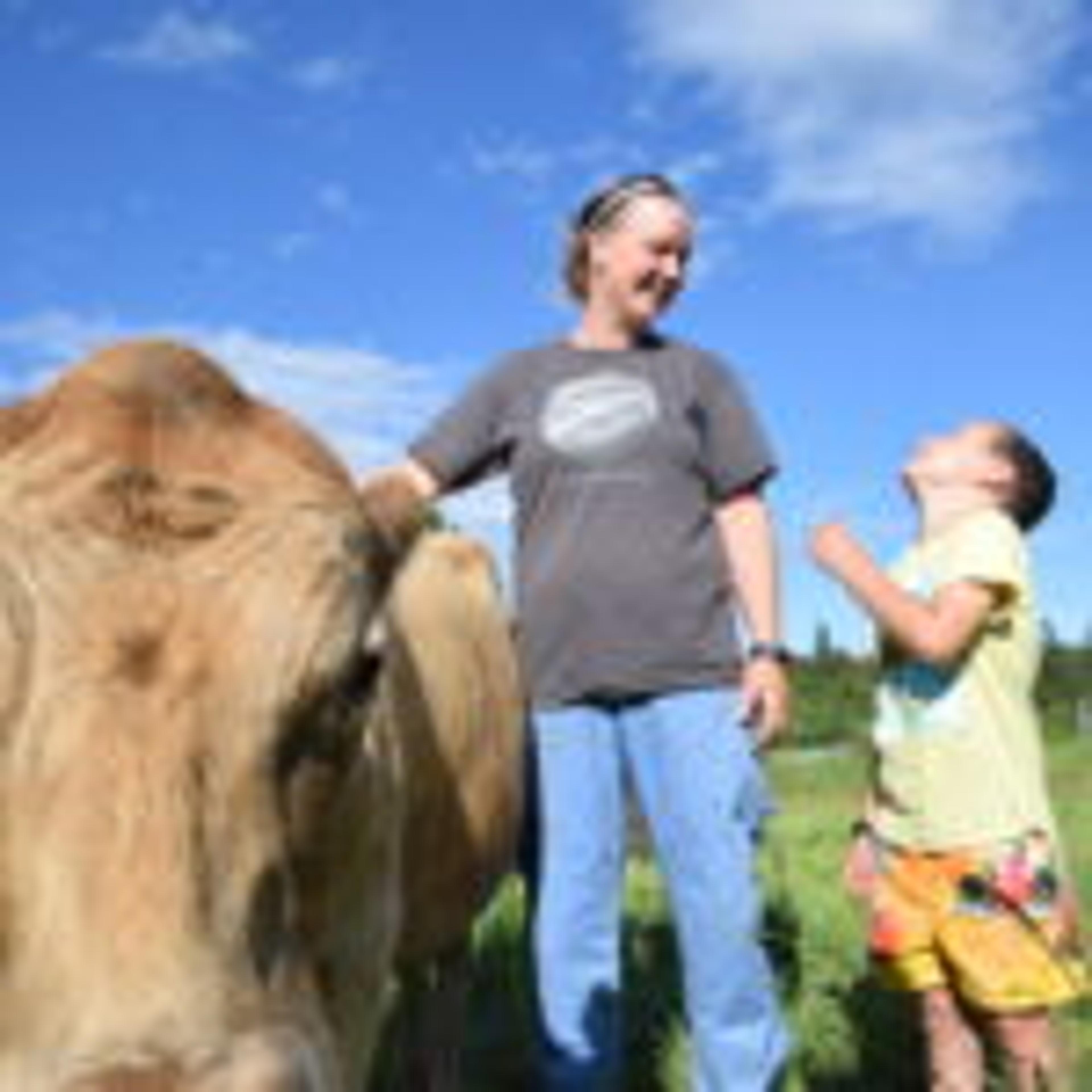 Mor sammen med kalvene. Og kastrerte okser får gå på beite sammen med kalver og kuer – kastreringen gjør at også oksene vokser saktere og gir et fantastisk kjøtt.