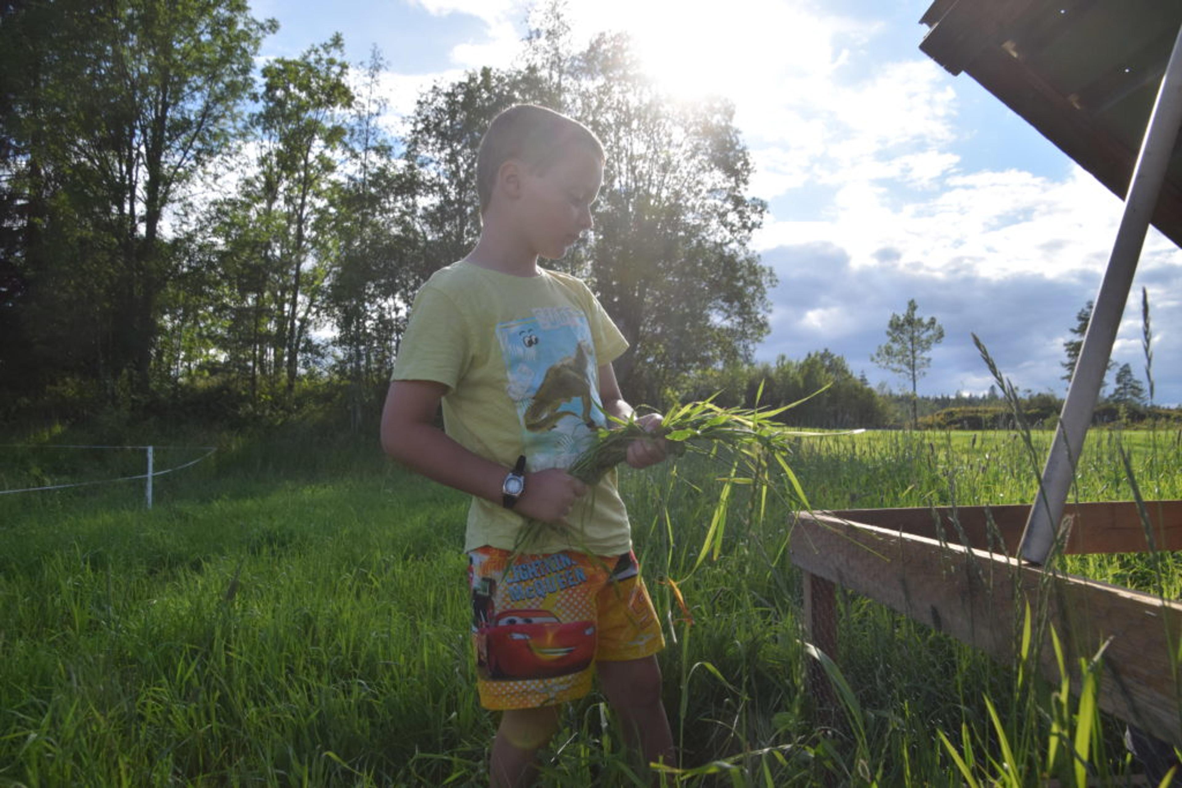 MORO Å MATE DYRA: Beitekaninene får litt ekstra grass å gomle på. Også kaninen skal bli til mat. Foto: Stian Ormestad.