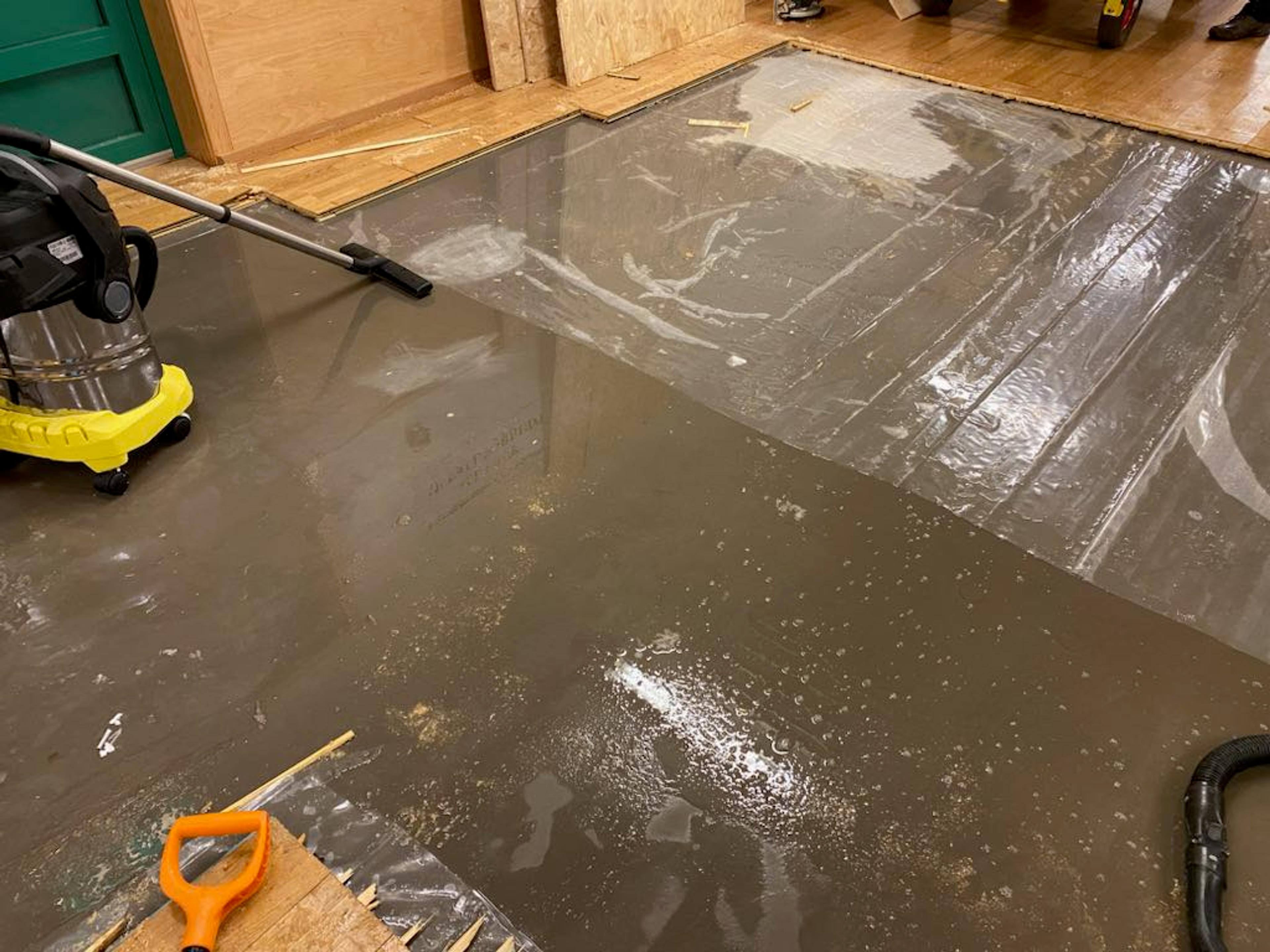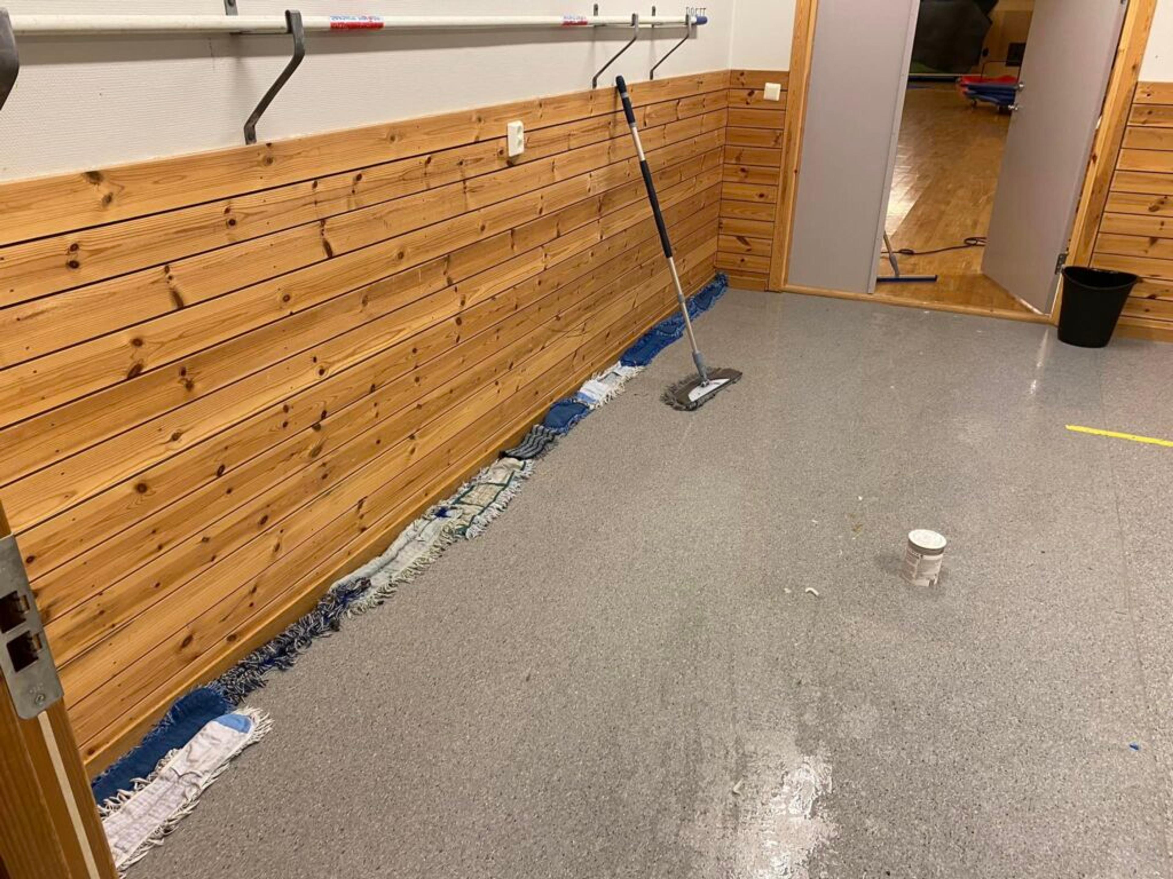 Vannet sto på det meste fem centimeter over gulvet. Det er flerbrukshallen som er ramma denne gangen, det ble den ikke sist.