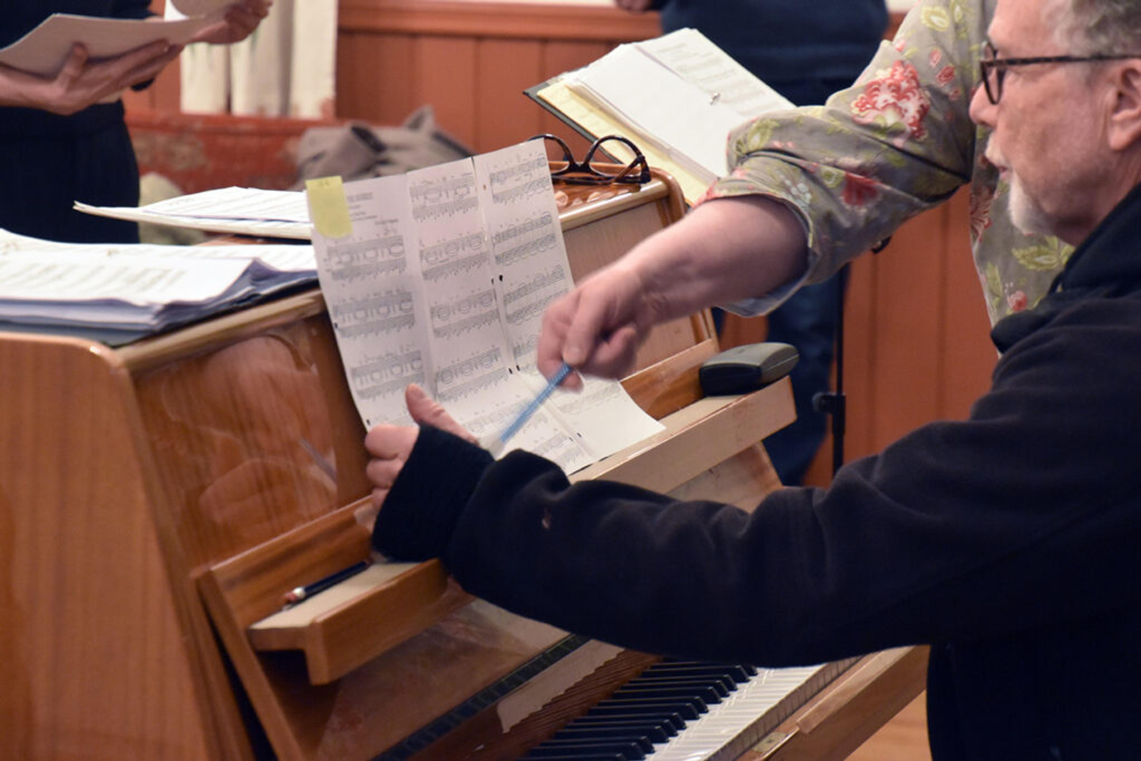 TERPER: Siste innspurt på øving før søndagens Vårkonsert og jubileumskonsert i Våle kirke. Foto: Stian Ormestad, ReAvisa.