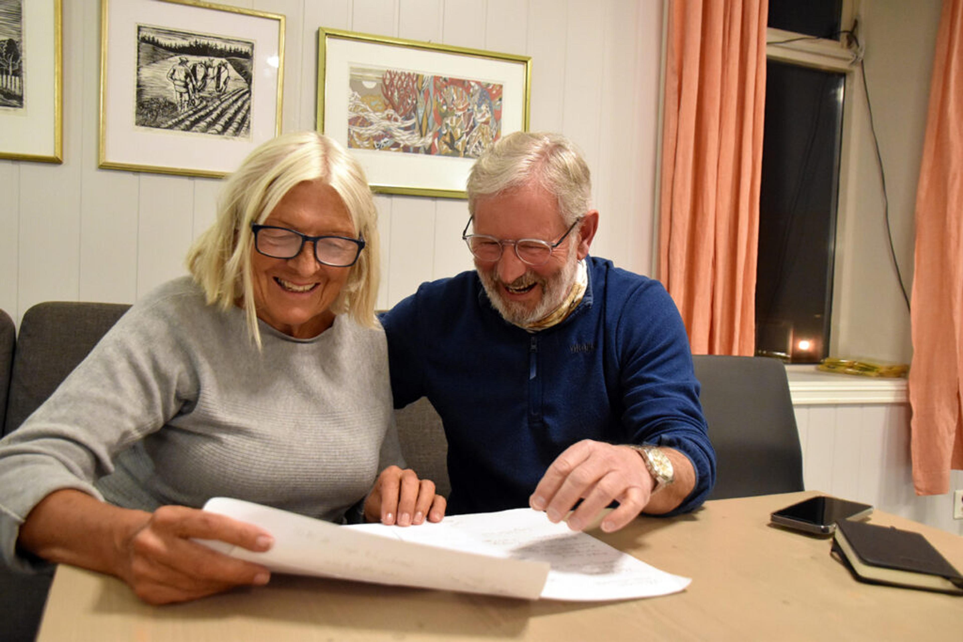 MIMRER: Vå-Ra-korets styreleder og styremedlem Ingegerd Holt Brattestå og Jørn Kjønnerød ser gjennom gamle papirer. Ingen av dagens medlemmer har vært med fra starten av, men noen har vært med fra slutten av 1970-tallet. Foto: Stian Ormestad, ReAvisa.