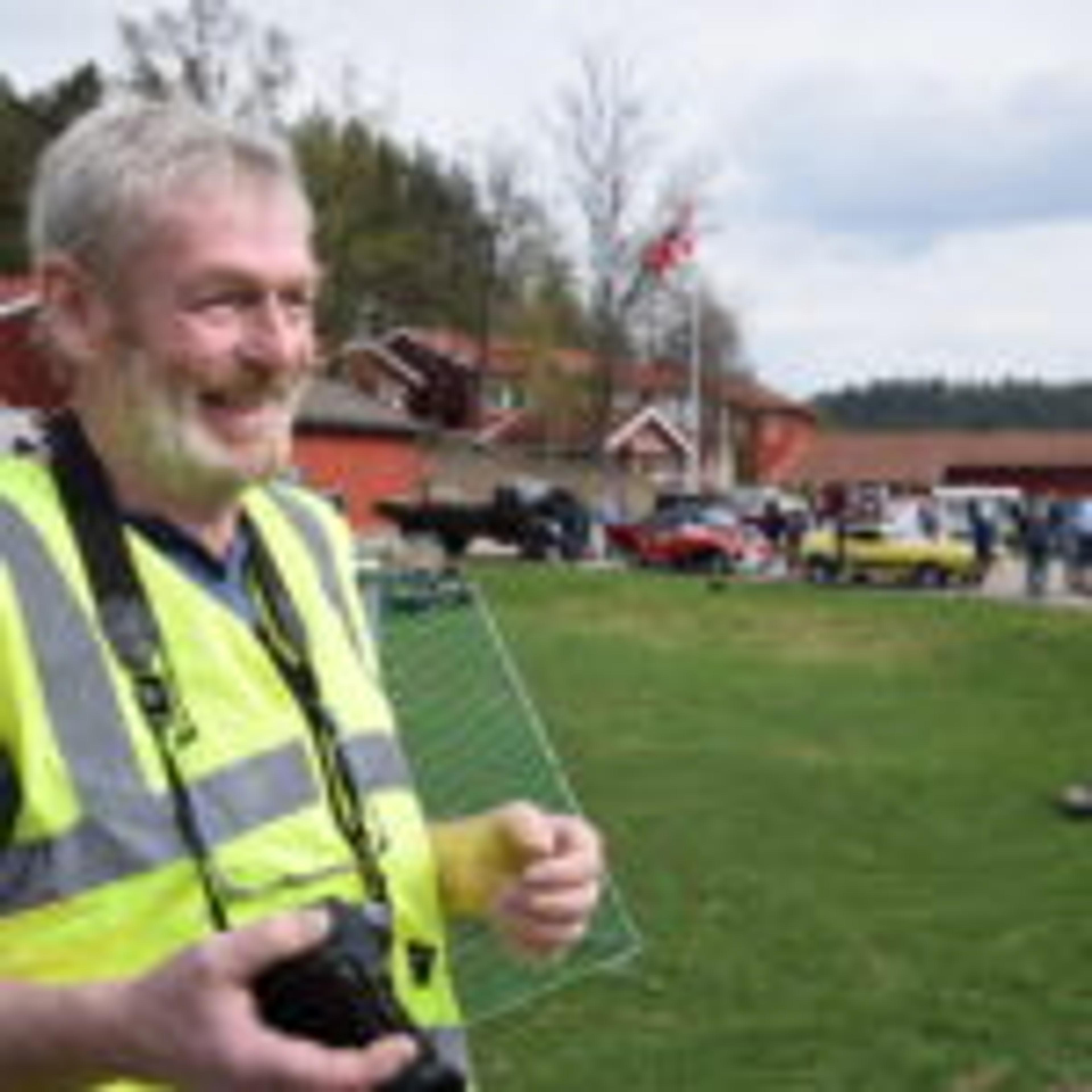 ORGANISERER: Steinar Gulli, nestformann i Re motorklubb, dirigerer rundt 200 biler på plass til oppstilling for årets 1. mai-tur. Foto: Stian Ormestad.