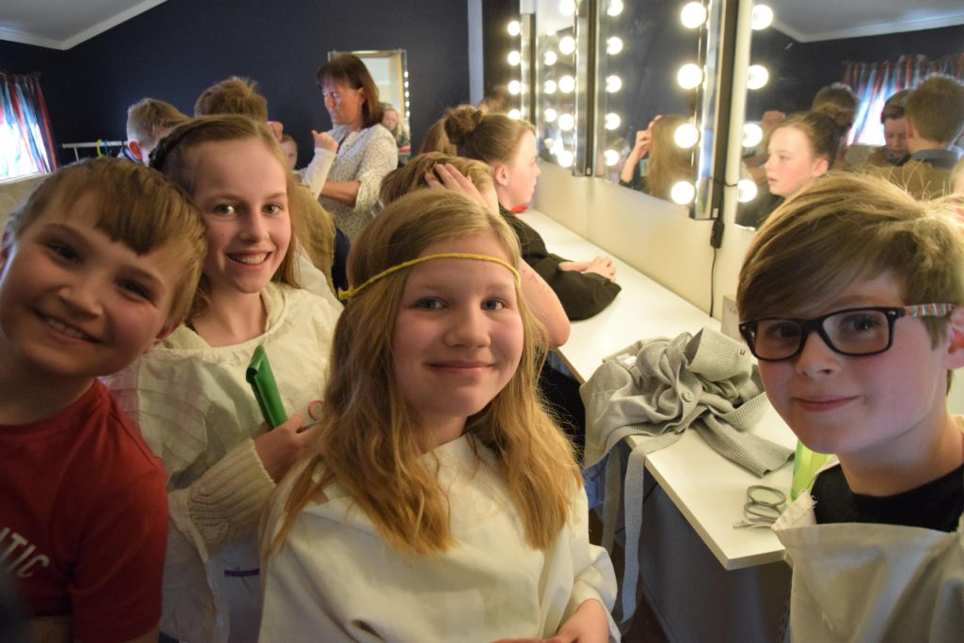 BACK STAGE: Det var travle skift bak scenen. Men ReAvisa rakk et bilde og noen få ord med denne gjengen med Solerød-elever. Foto: Stian Ormestad.