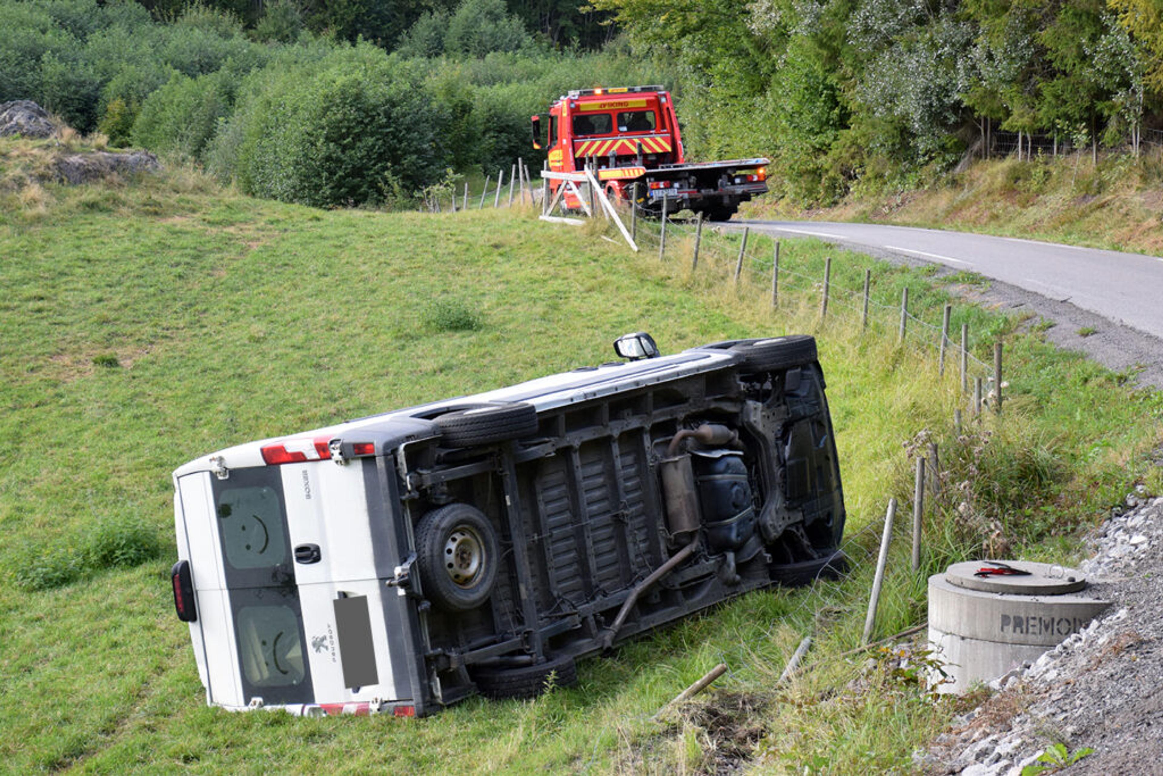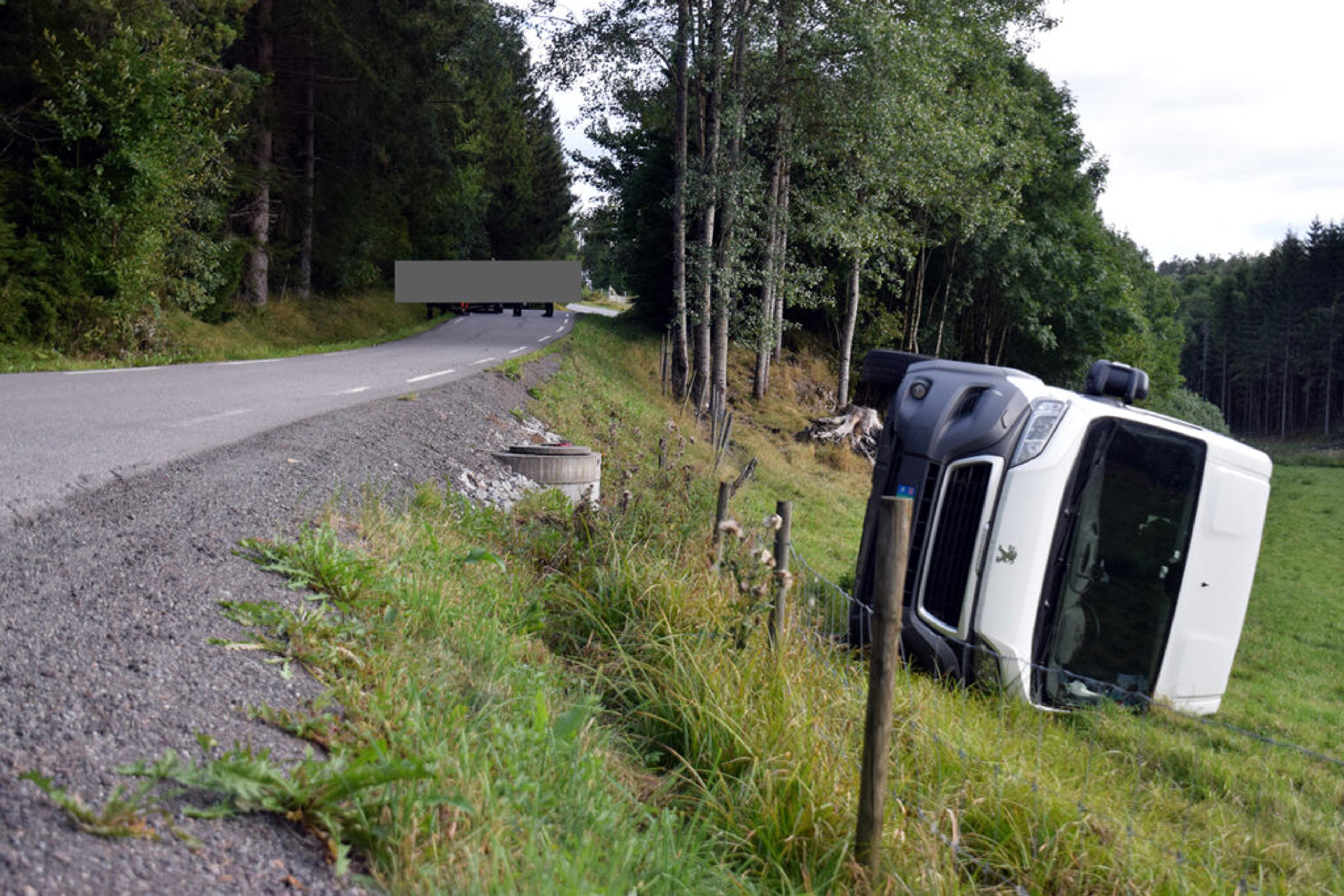 VELT OVER VIVESTADÅSEN: En varebil ligger utafor veien. Foto: Stian Ormestad.