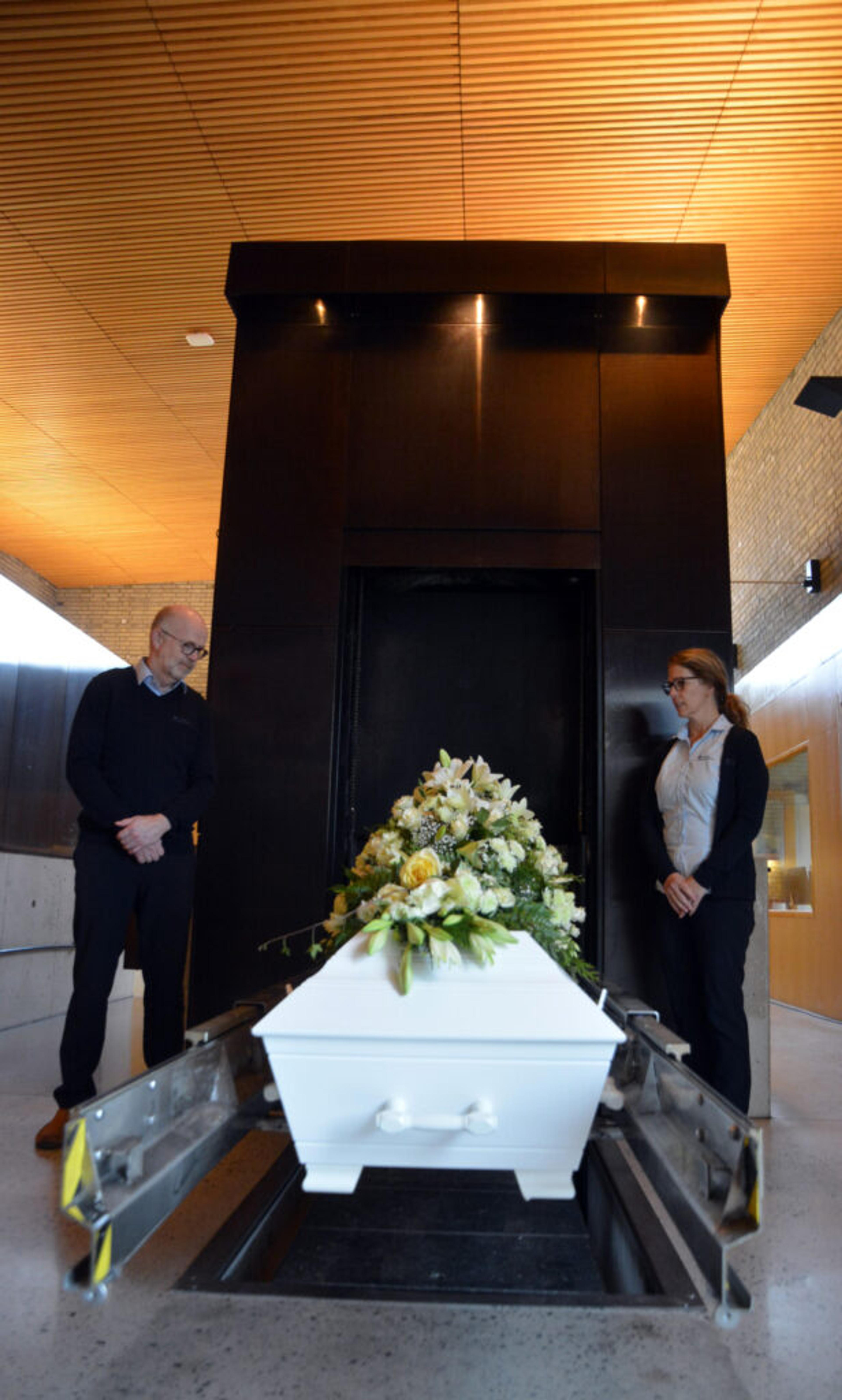 – Da kan man velge om man samles rundt kista før kremering, og/eller rundt urna etter kremering. Man kan også bli med inn på et observasjonsrom og se inn til kremeringsovnene, mens kista kjøres inn i kremeringsovnen.