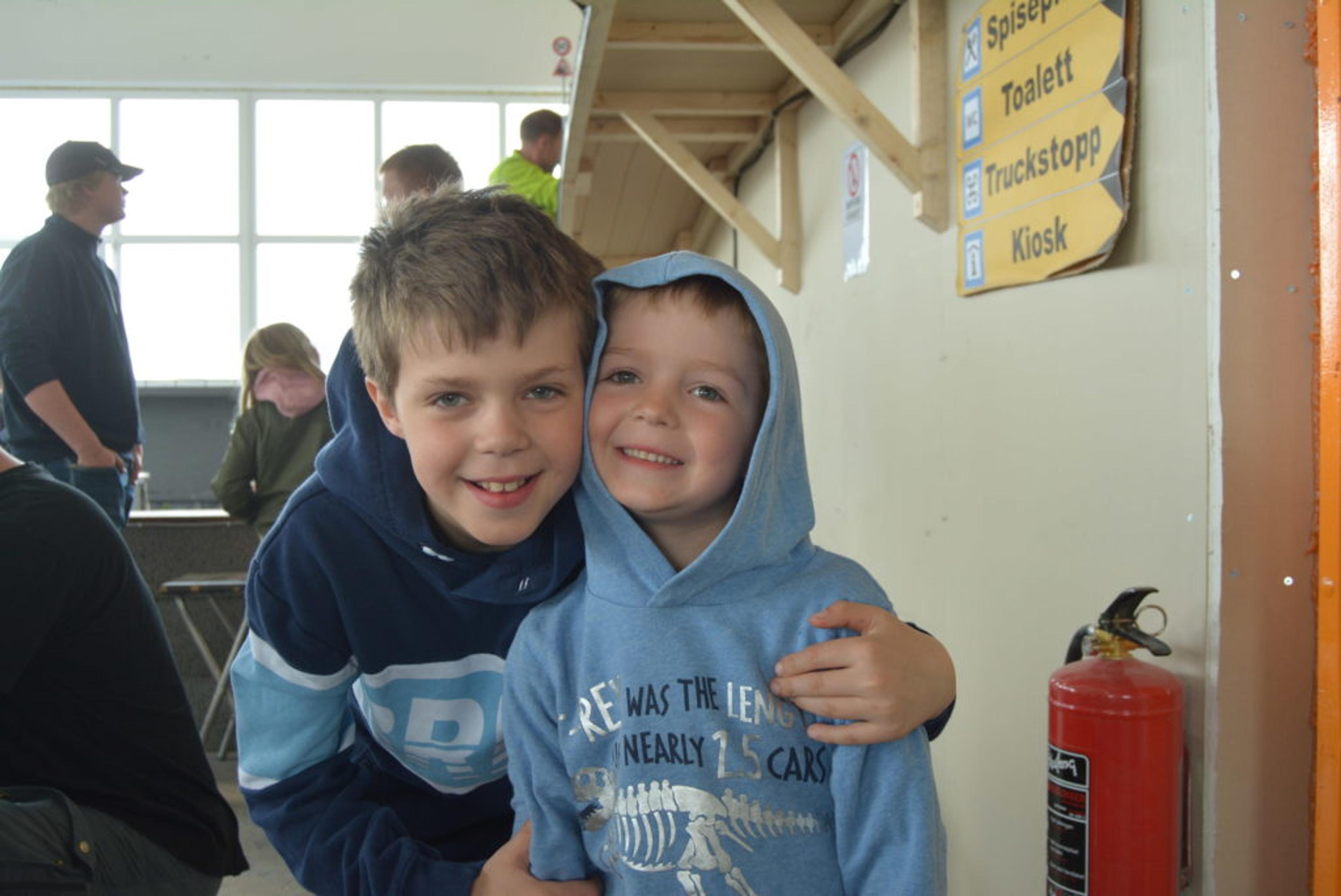 VIL PRØVE: Johannes og Matheo fra Holmestrand ville gjerne prøvekjøre lastebilene. Foto: Amalie Andersen.