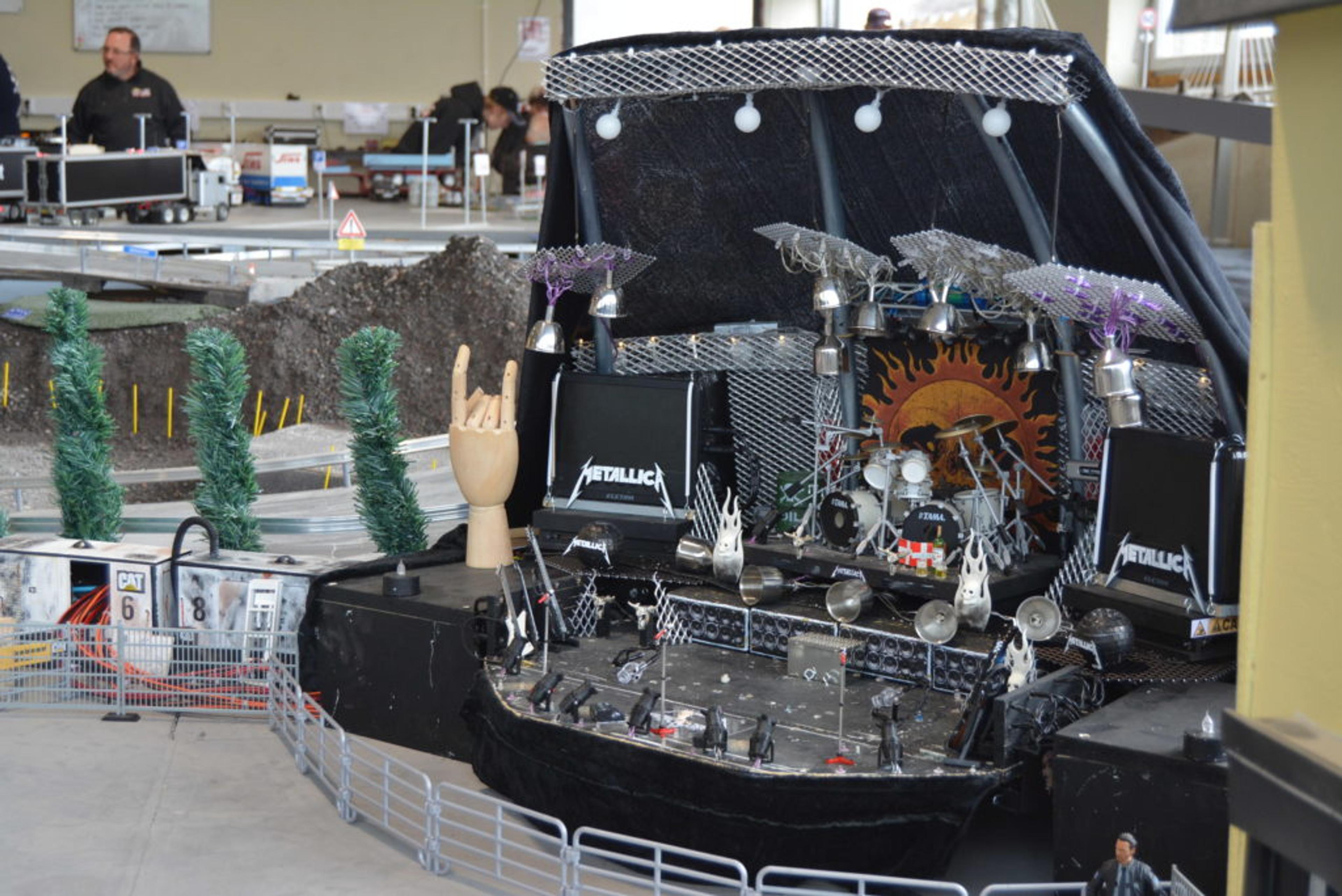 METALLICA: Denne mini-scenen er laget for hånd og sto under jubileet i Vestfold RC Truckers sine lokaler. Foto: Amalie Andersen.