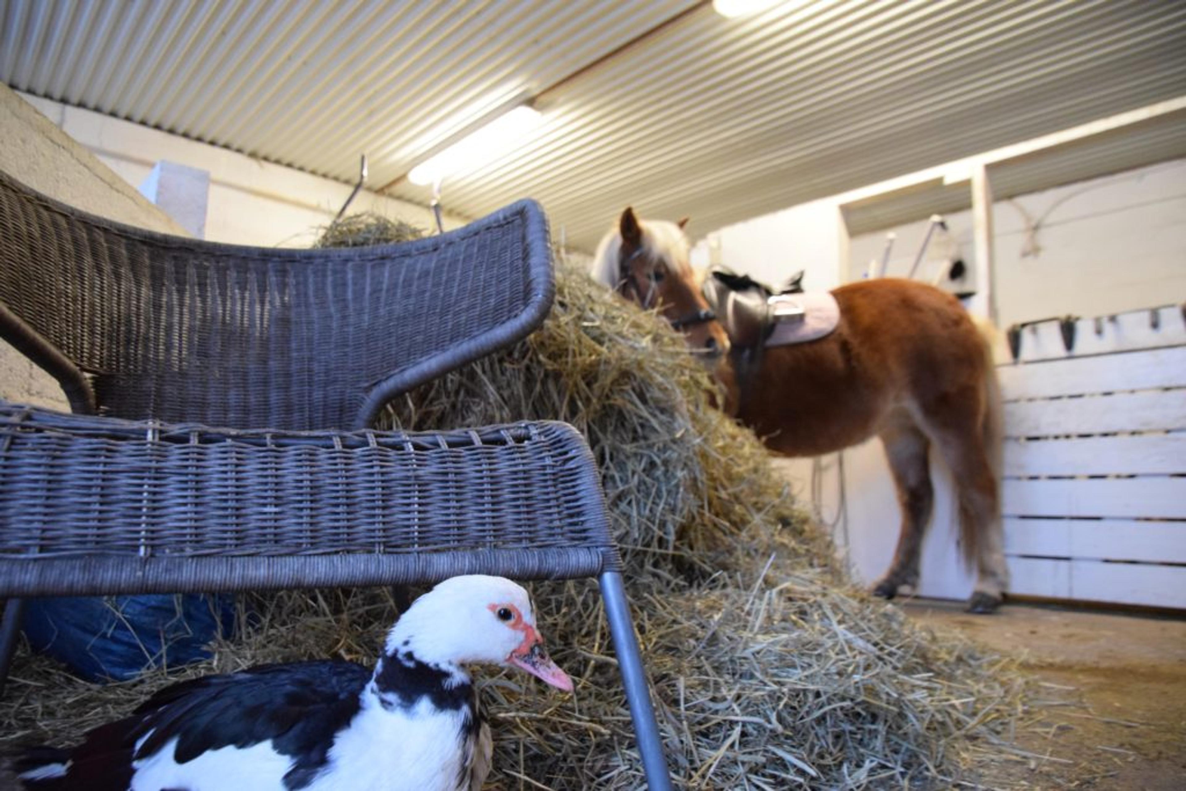 Også vertskapet med Eva og hennes åtte ansatte koser seg her på Opprand gård. Gårdsdrifta ellers er dyrking av frø. Eva har drivi med ridefysioterapi i ti år nå.