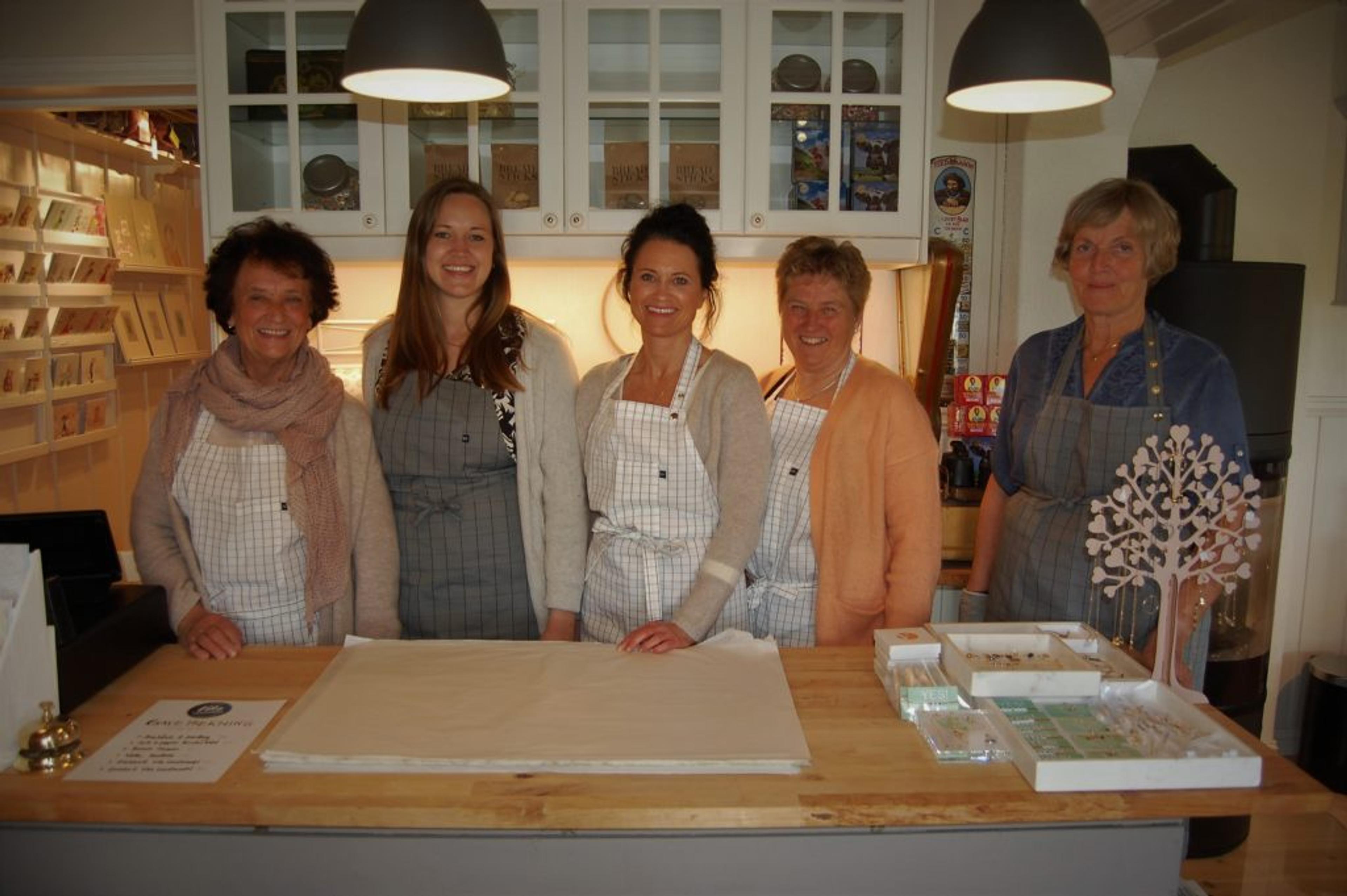 ÅPNINGSDAG: Dette var gjengen bak kassa da Vika landhandel åpna dørene igjen for sju år siden. Wenche lengst til venstre. Foto: Håkon Westby, ReAvisa.