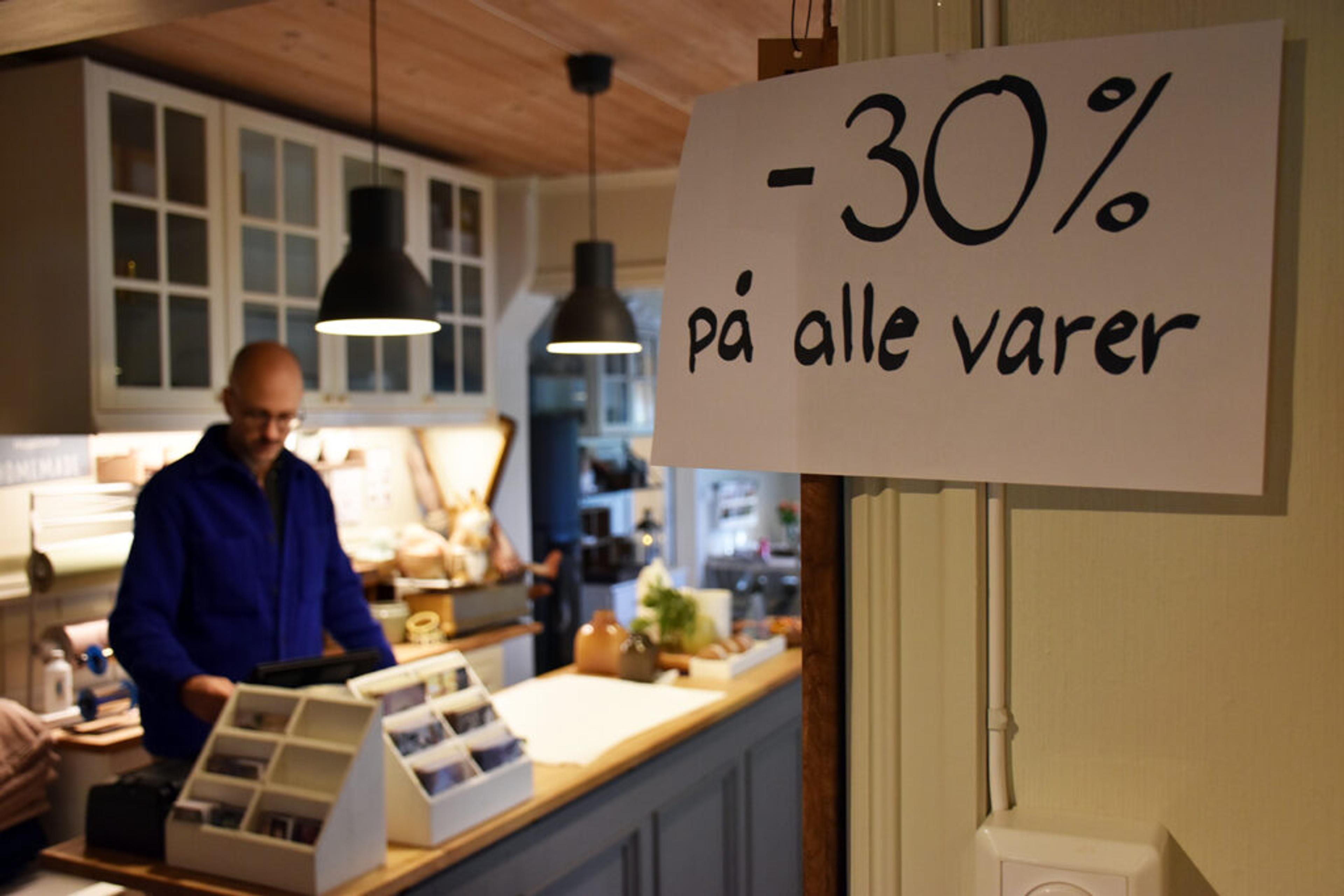 ALT SKAL UT: Landhandelen holder åpent som normalt. Det er store avslag på hele butikken og torsdag 31. oktober 2024 blir det langdag i Vika landhandel. Foto: Stian Ormestad, ReAvisa.
