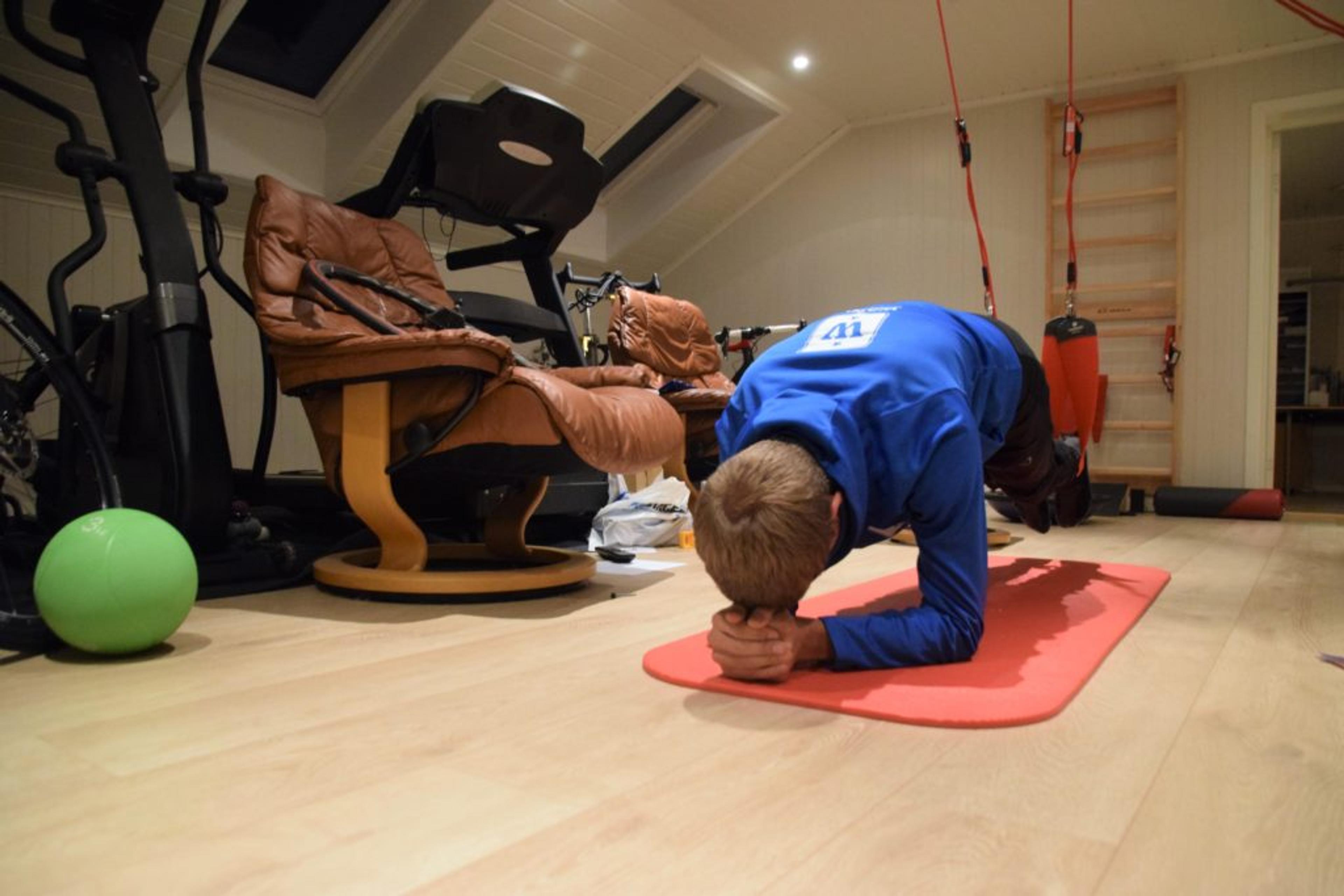 PÅ TRENINGSROMMET: Hjemme på Bjune, i barndomshjemmet. Bildet er fra da Iver Johan Knotten ble stemt fram som Årets idrettsnavn i Re i 2016. Foto: Stian Ormestad, ReAvisa.