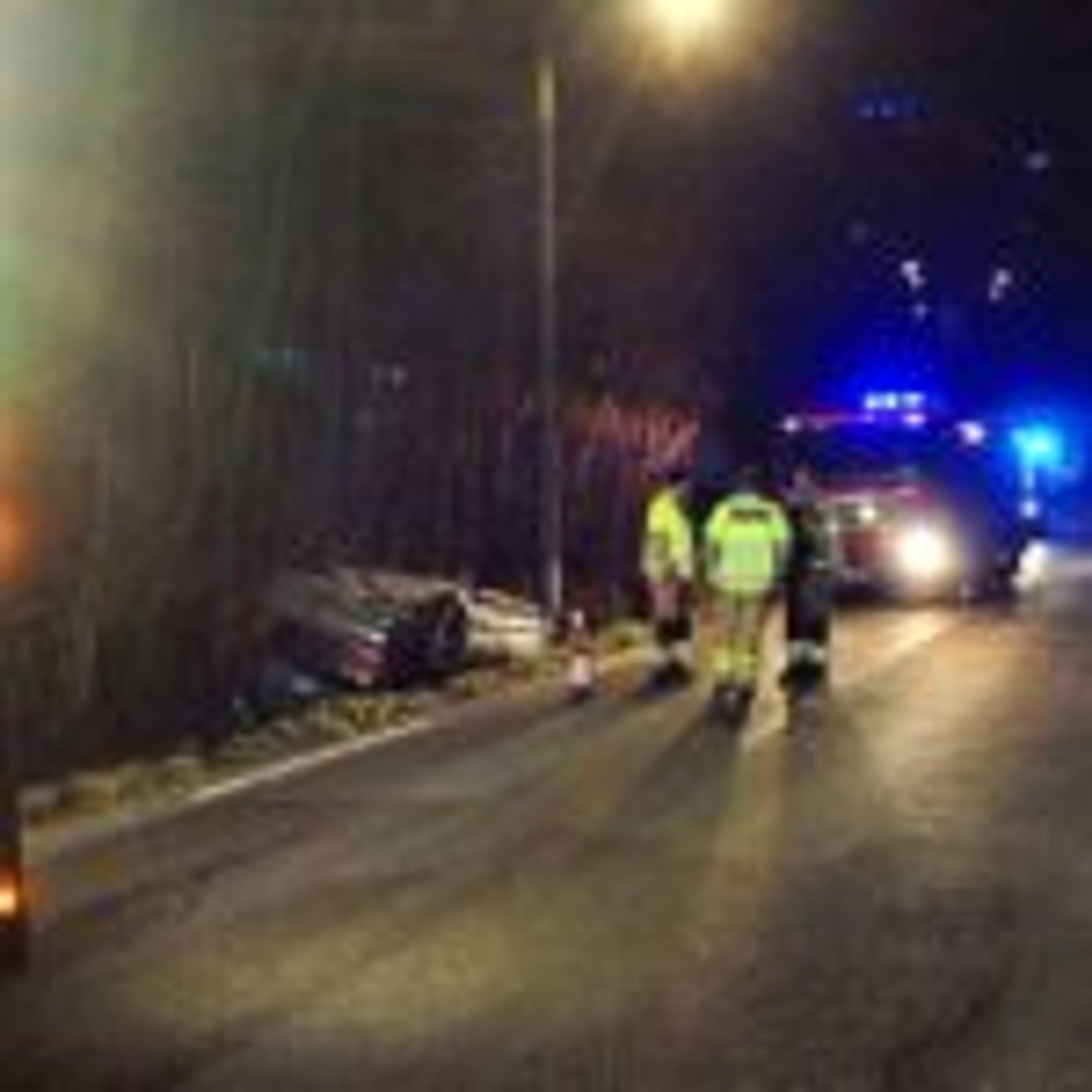 ULYKKE: – Det var svært glatt på stedet, meldte nødetatene da en bil havna opp-ned i grøfta langs Våleveien søndag. Foto: VIB.