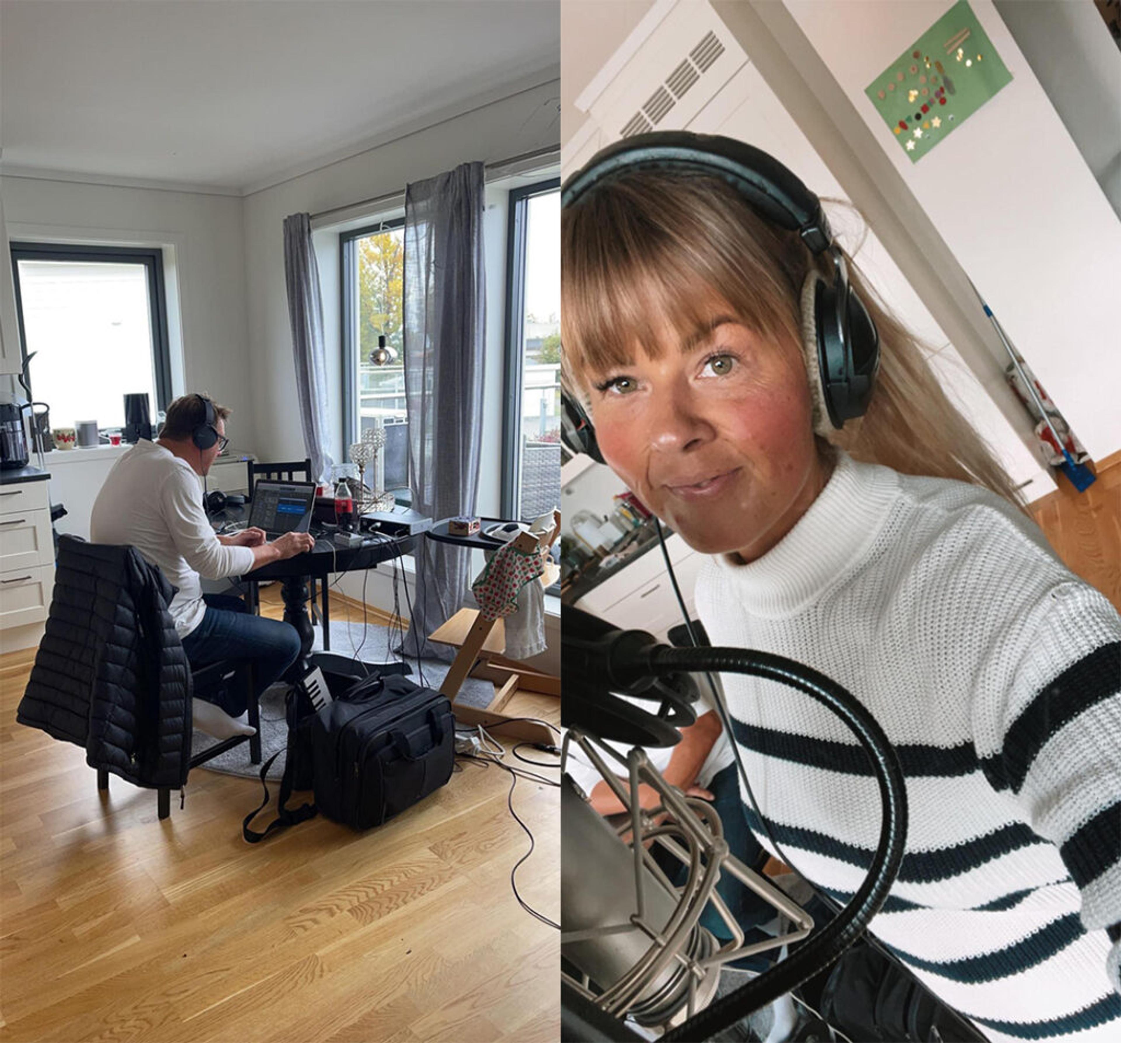 STUDIO I EGEN STUE: Anne Merete Erdal (40 i dag) spilte inn sin egen julesang i sin egen stue på Brekkeåstunet i Våle. Foto: Privat.