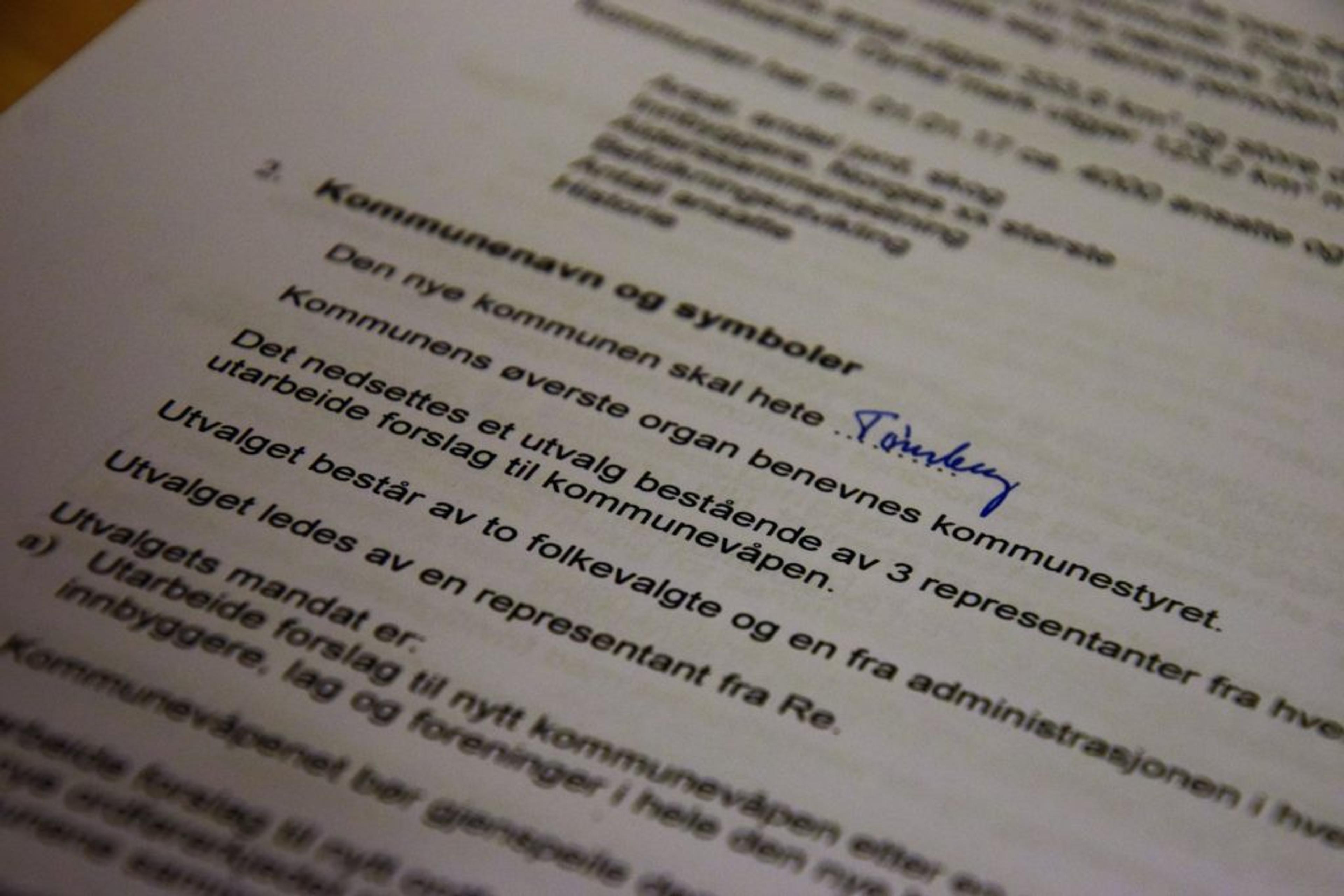Dette er forslag i en politisk plattform som styringsgruppa vil legge fram for kommunestyret i Re og bystyret i Tønsberg. Først når den er banka gjennom der, er det spikra. Både ordføreren i Re og ordføreren i Tønsberg føler at forslaga er godt forankra i egne rekker.