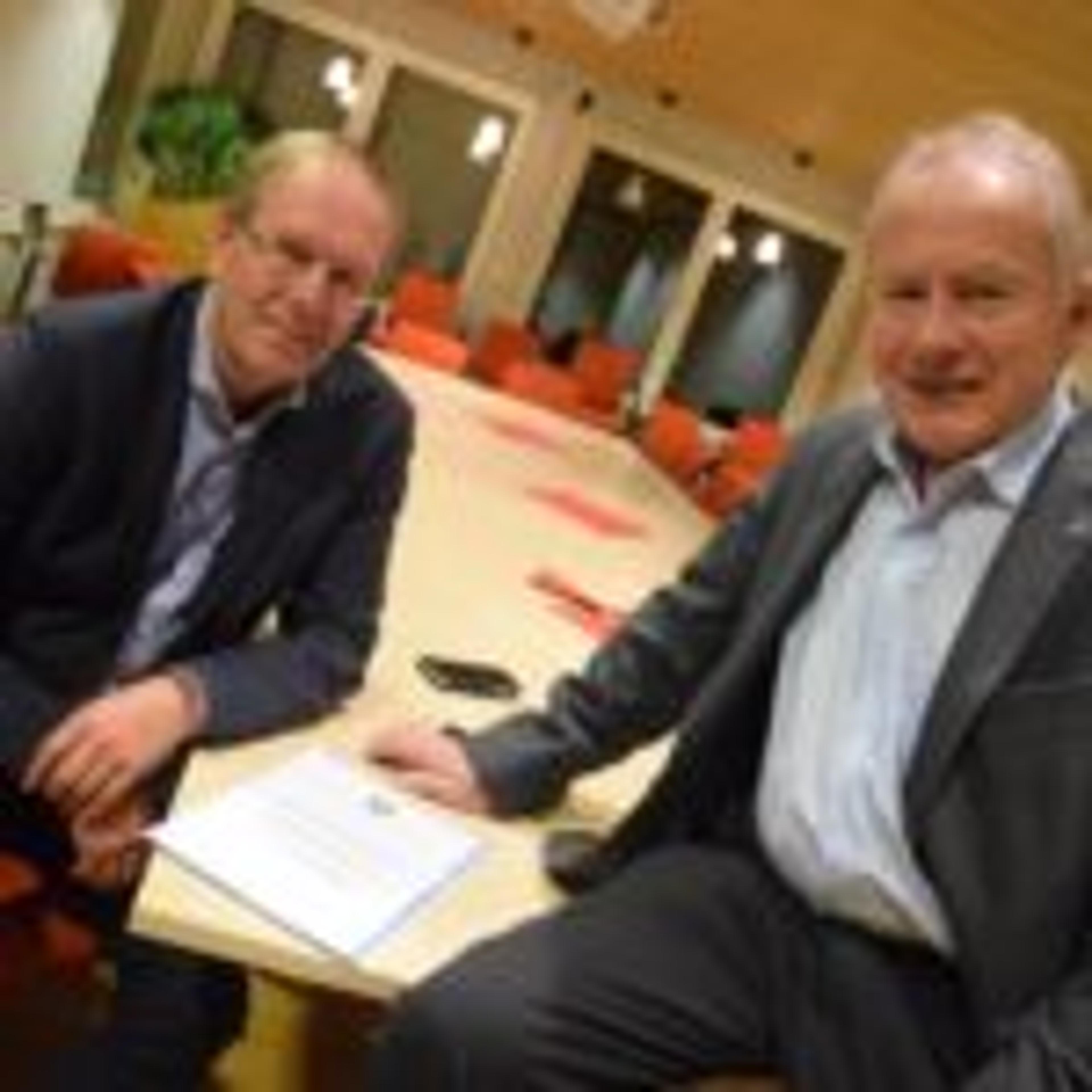 LIKEVERDIGE PARTER: Tønsberg-ordfører Petter Berg og Re-ordfører Thorvald Hillestad forteller om et godt samarbeidsklima. Foto: Stian Ormestad.