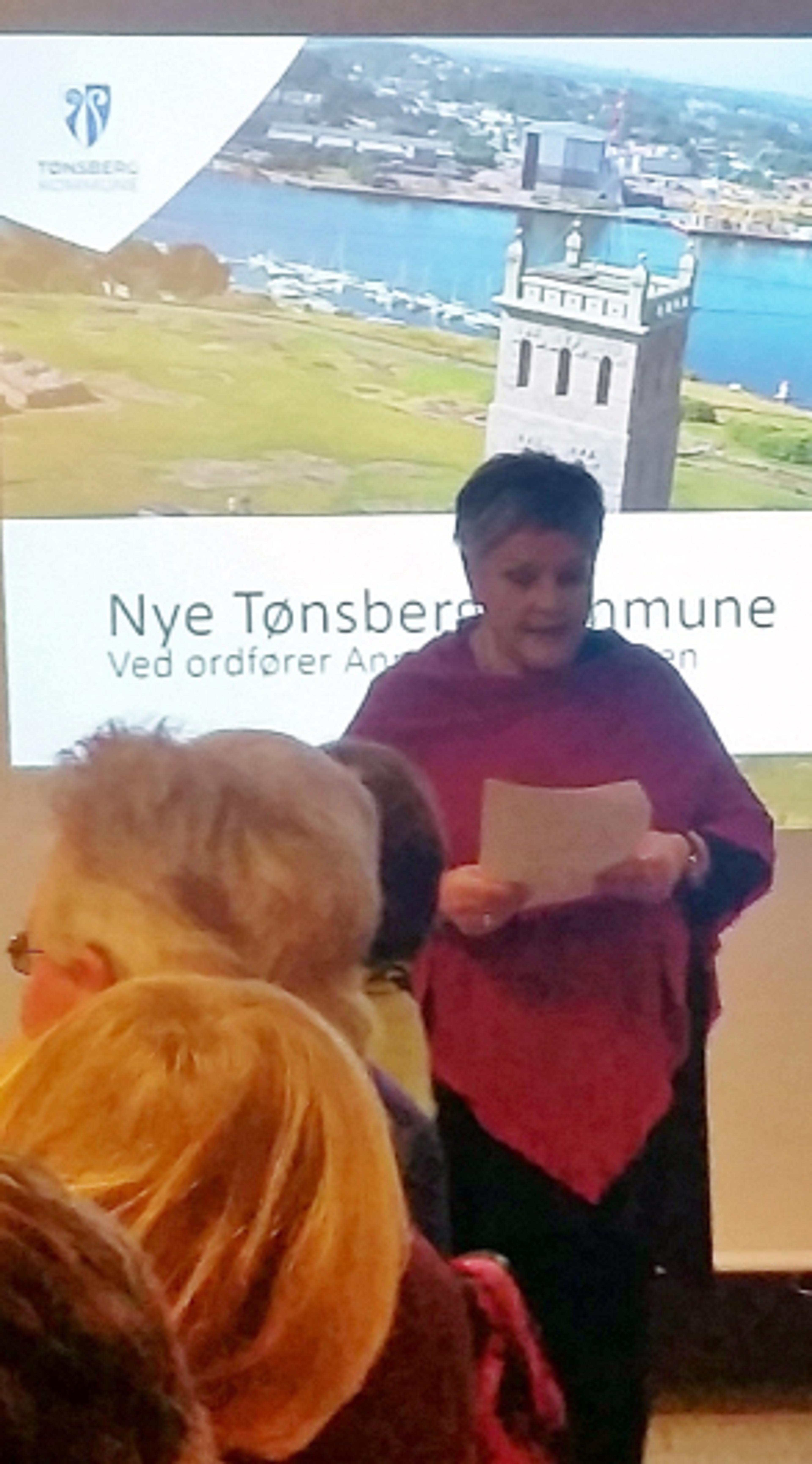 Samme kveld som ordføreren var i Vivestad, onsdag 26. februar, var info-ansvarlig i nye Tønsberg kommune Anders Tyvand på møte hos bygdekvinnelaget i Undrumsdal.