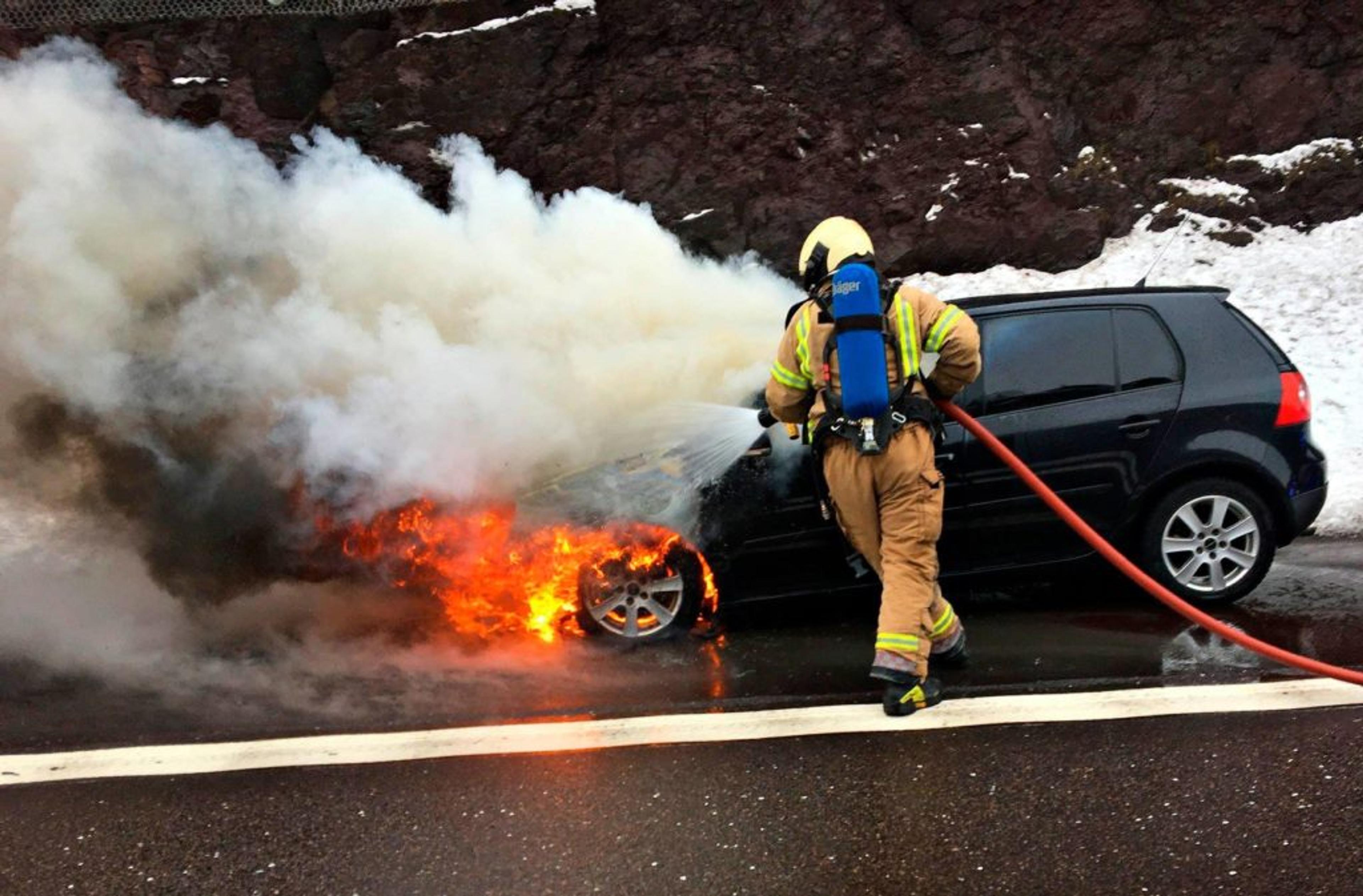 BILBRANN: Brannmannskap fikk kjapt slått ned brannen. Foto: VIB.
